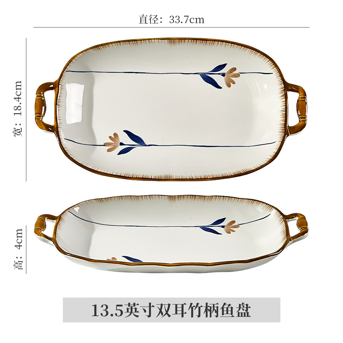 • Lantingxu 13.5inch 이중 귀 대나무 손잡이 생선 접시
