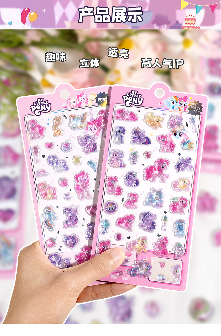 정품 플래시 포니 폴리 3D 재미있는 구호 스티커 어린이 만화 크리스탈 휴대 전화 구 카드 스티커스토어 가기