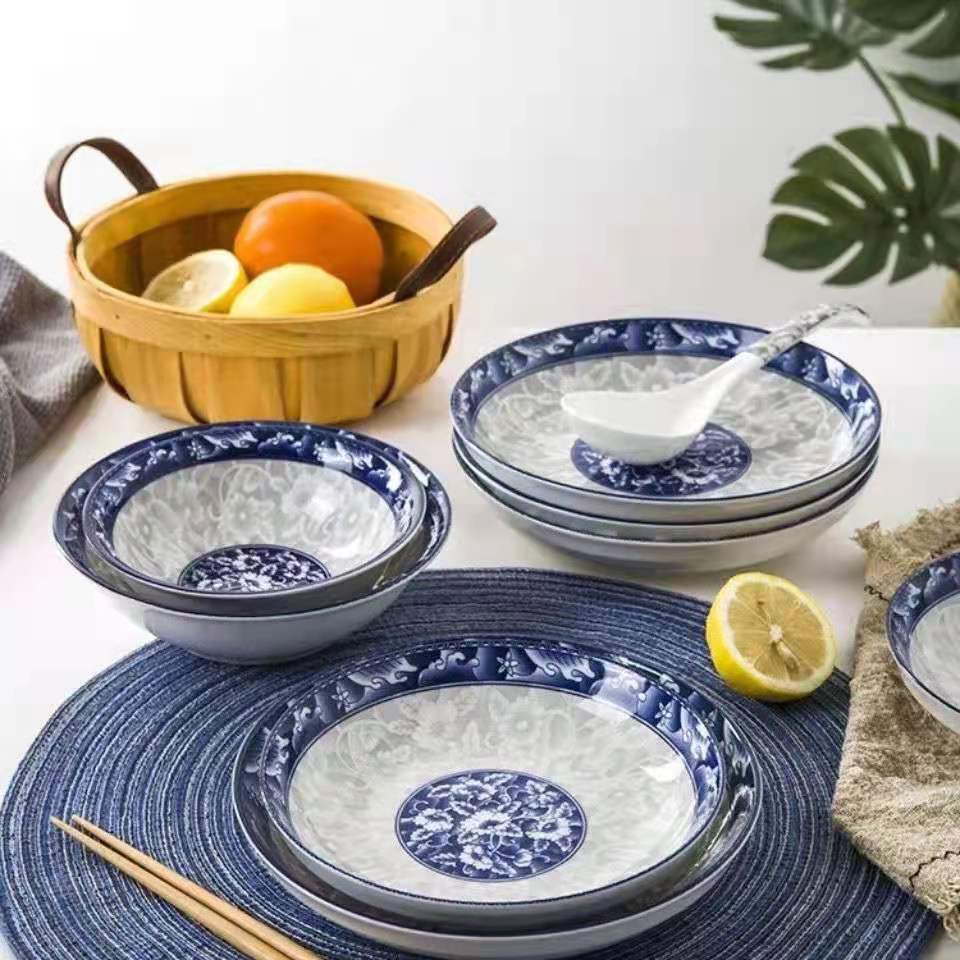 6 인치 플레이트 중국식 파란색과 흰색 도자기 큰 접시 맛 접시 접시 먹는 요리 깊은 접시 세라믹 요리 수프 요리