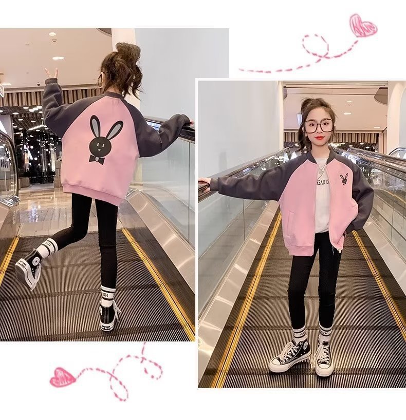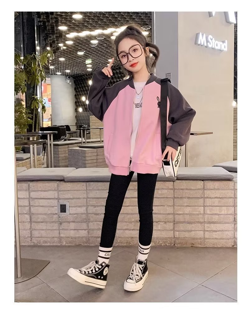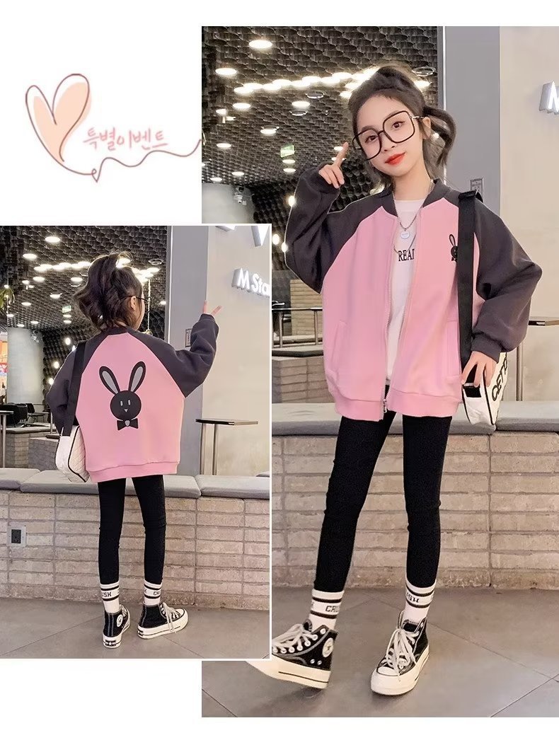여자 야구 세트 코트 2025 가을 새 한국 만화 지퍼 셔츠 어린이 자켓 조수스토어 가기