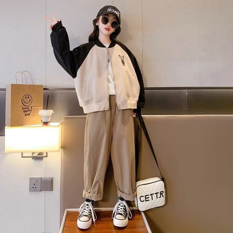 여자 야구 세트 코트 2025 가을 새 한국 만화 지퍼 셔츠 어린이 자켓 조수