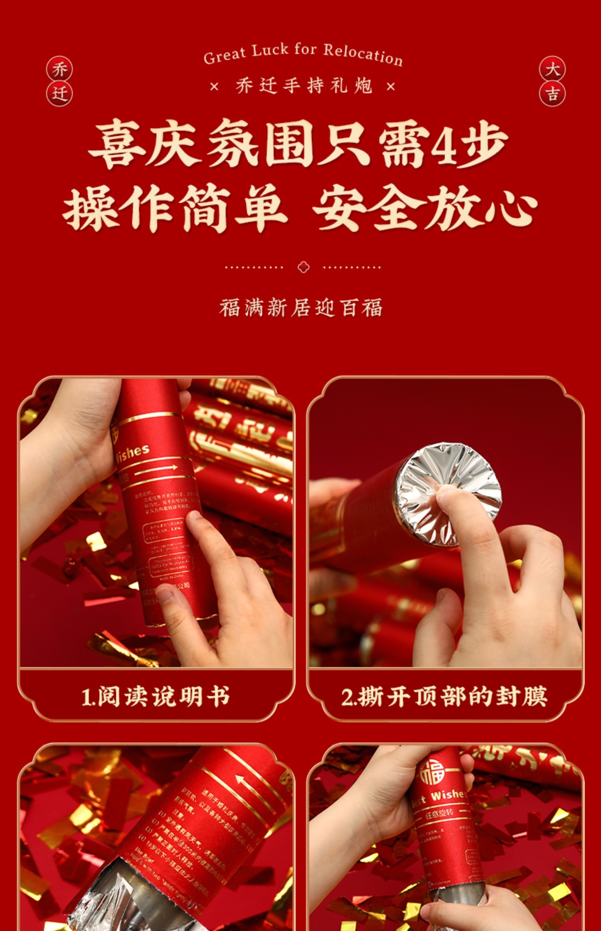 집 리본 불꽃 놀이 튜브에 경의를 표하는 집들이 장식 휴대용 스프레이 튜브 새로운 홈 레이아웃 이동 의식 용품스토어 가기