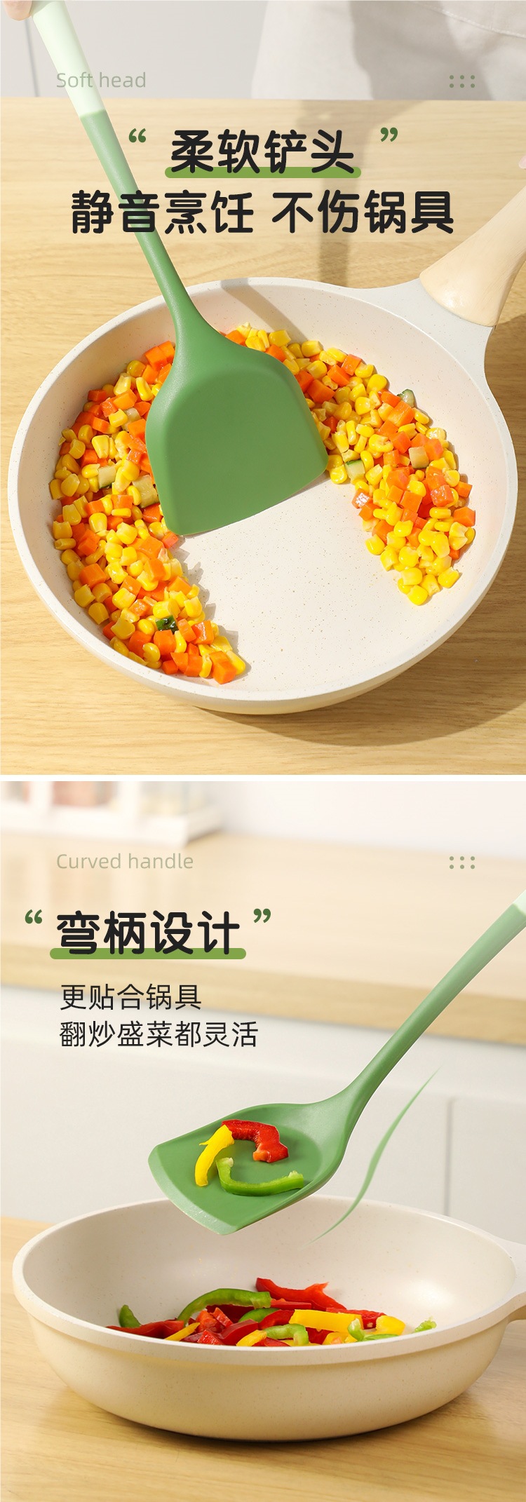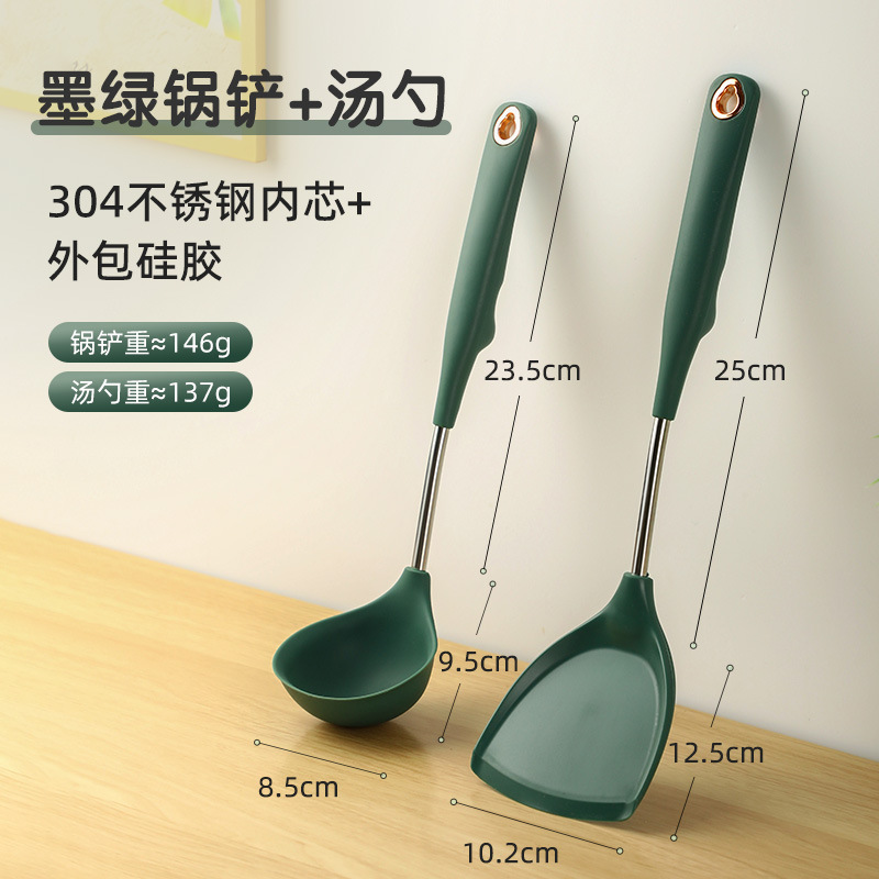• 짙은 녹색 확장형 실리콘 주걱 + 수프 스푼