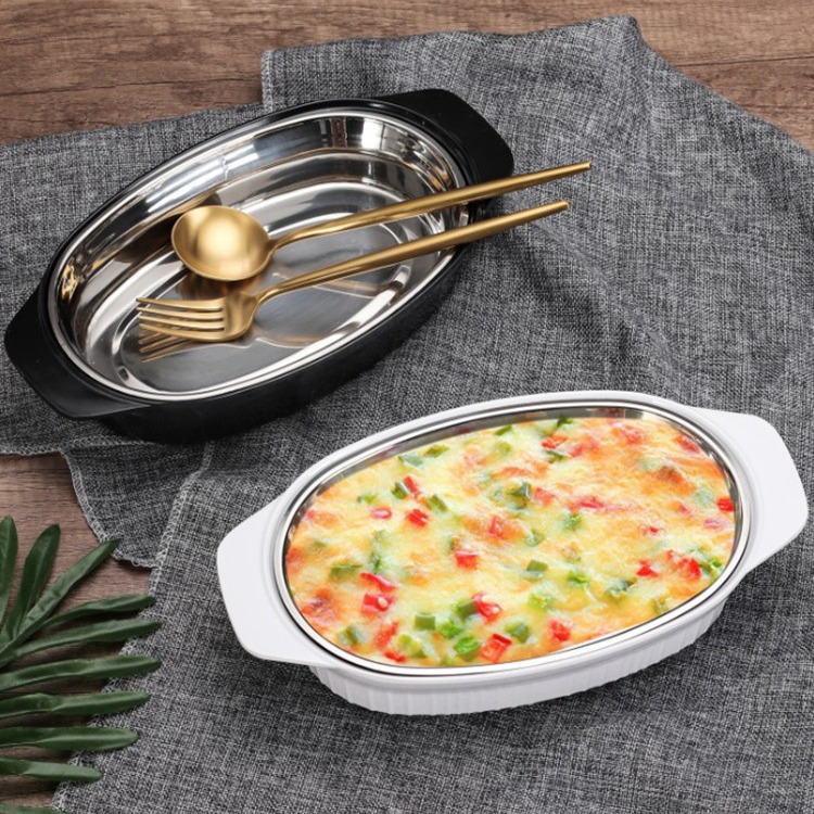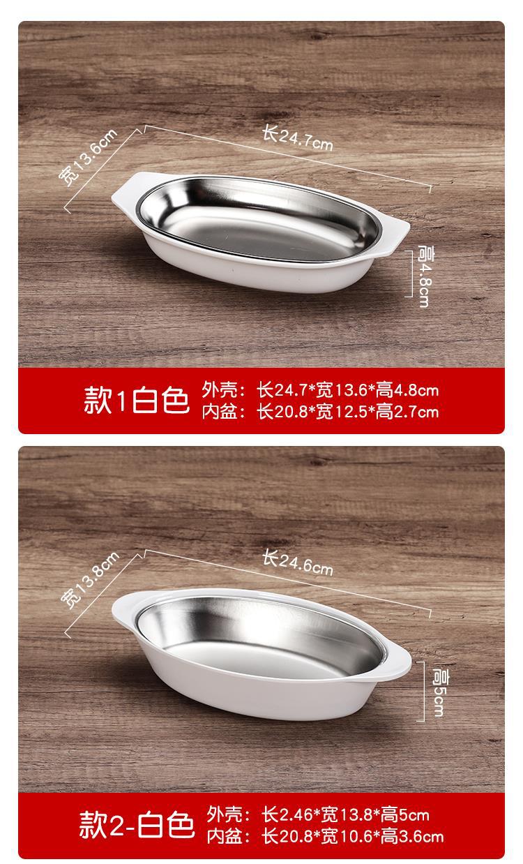 치즈 구운 쌀판 쌀 그릇 쌍발 모방 도자기 창조적 인 간단한 스테인레스 스틸 베이킹 고온 오븐 직사각형 멜라민스토어 가기