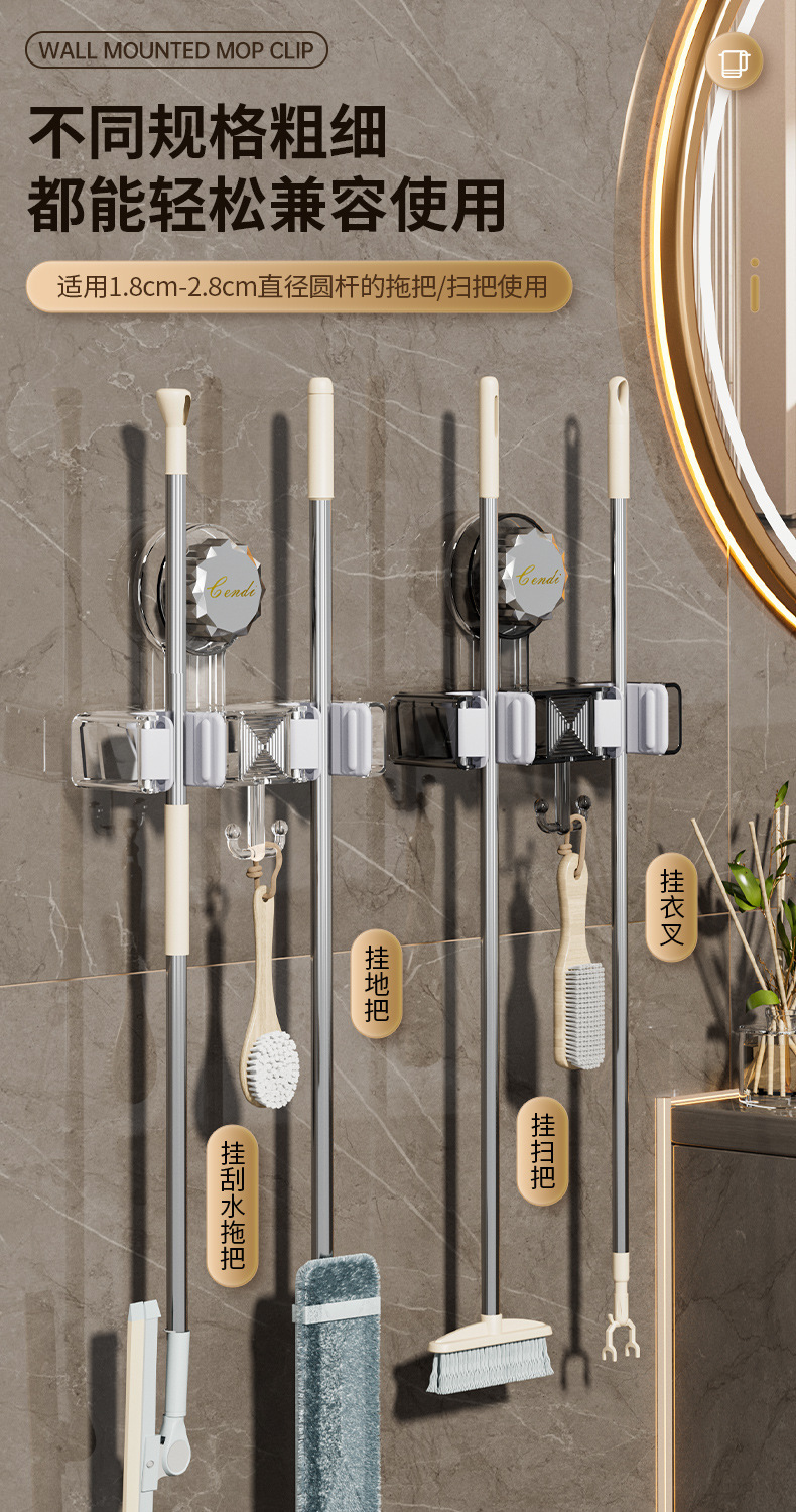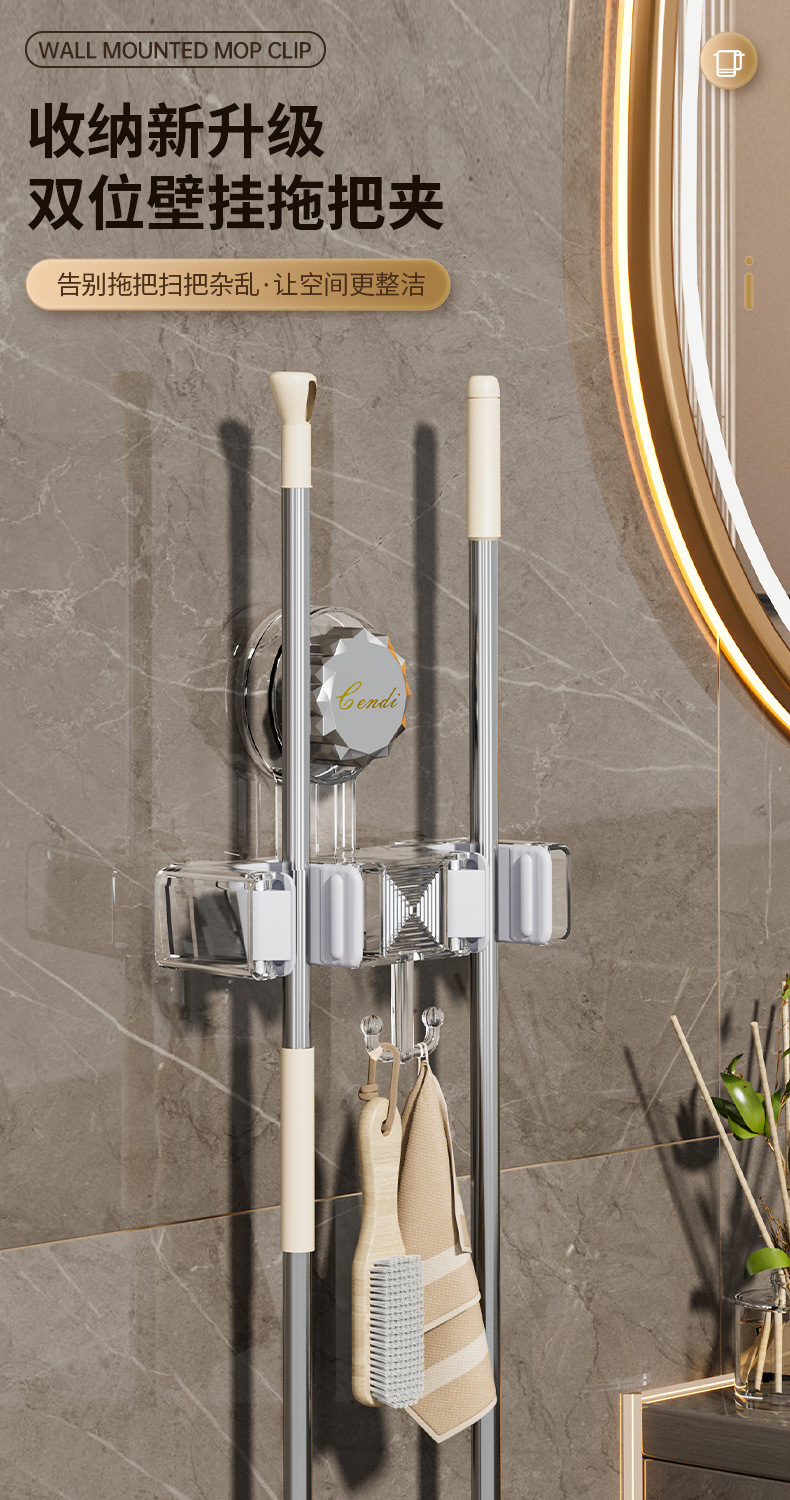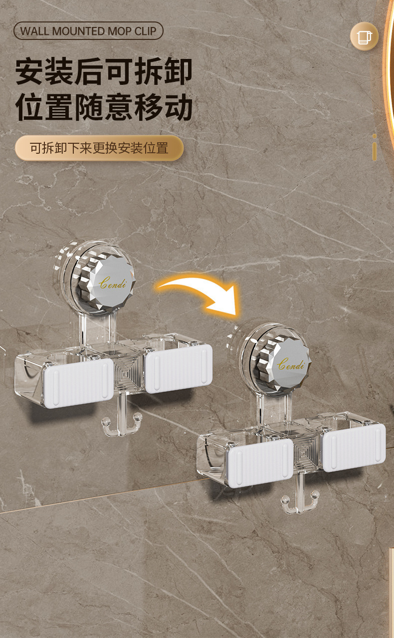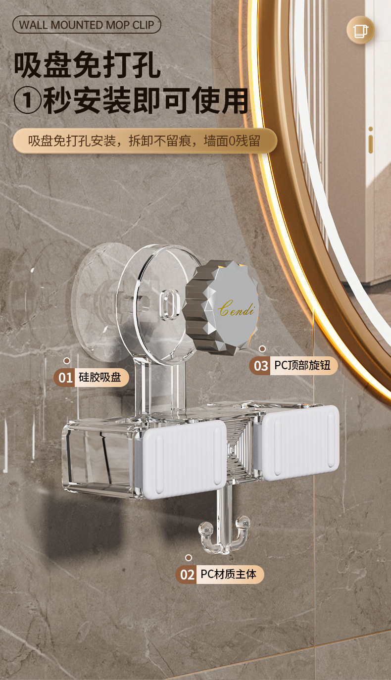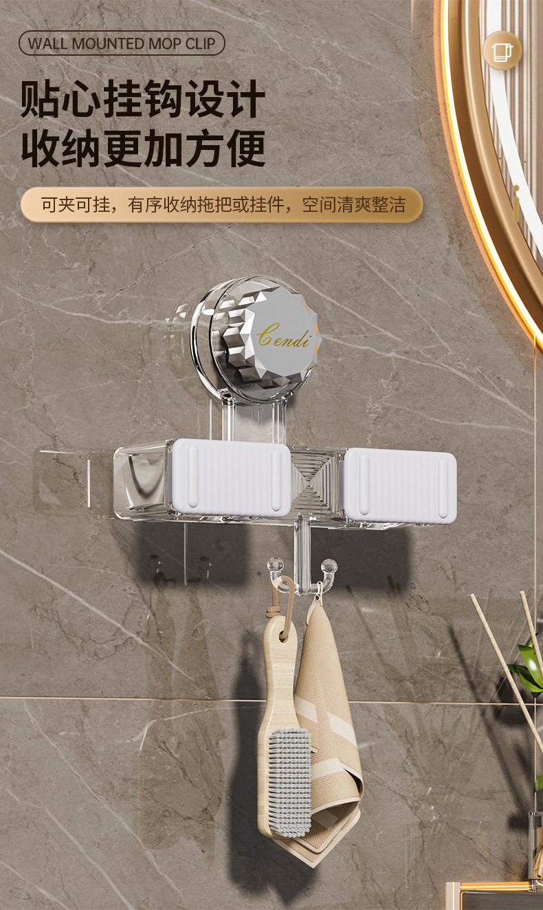 벽 교수형 흡입 유형 펀치없는 걸레 클립 벽 교수형 강력한 접착 회전 흡입 컵 걸레 선반 화장실 보관 랙스토어 가기