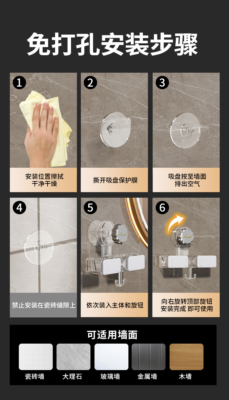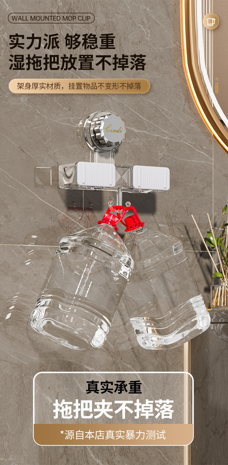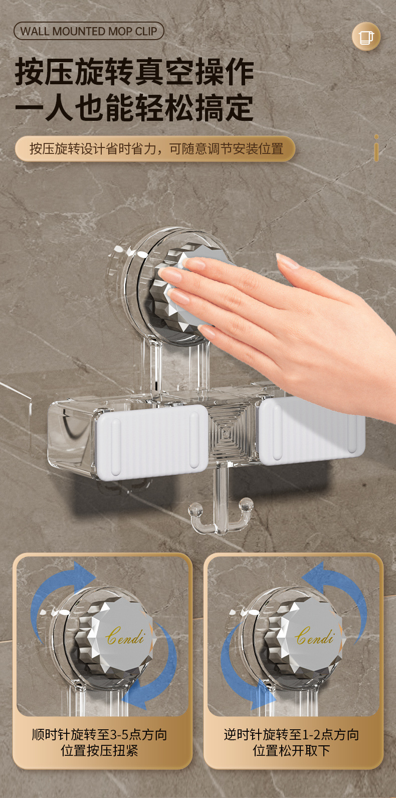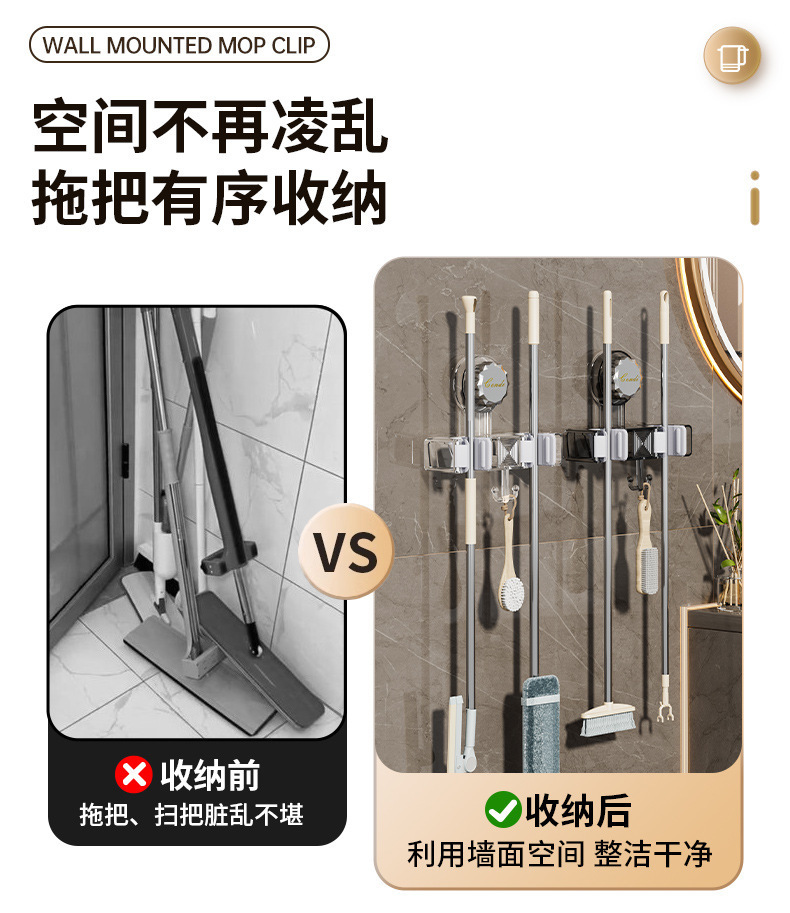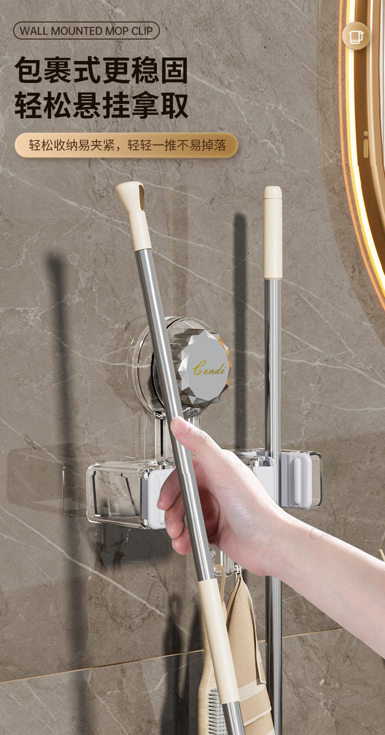 벽 교수형 흡입 유형 펀치없는 걸레 클립 벽 교수형 강력한 접착 회전 흡입 컵 걸레 선반 화장실 보관 랙스토어 가기