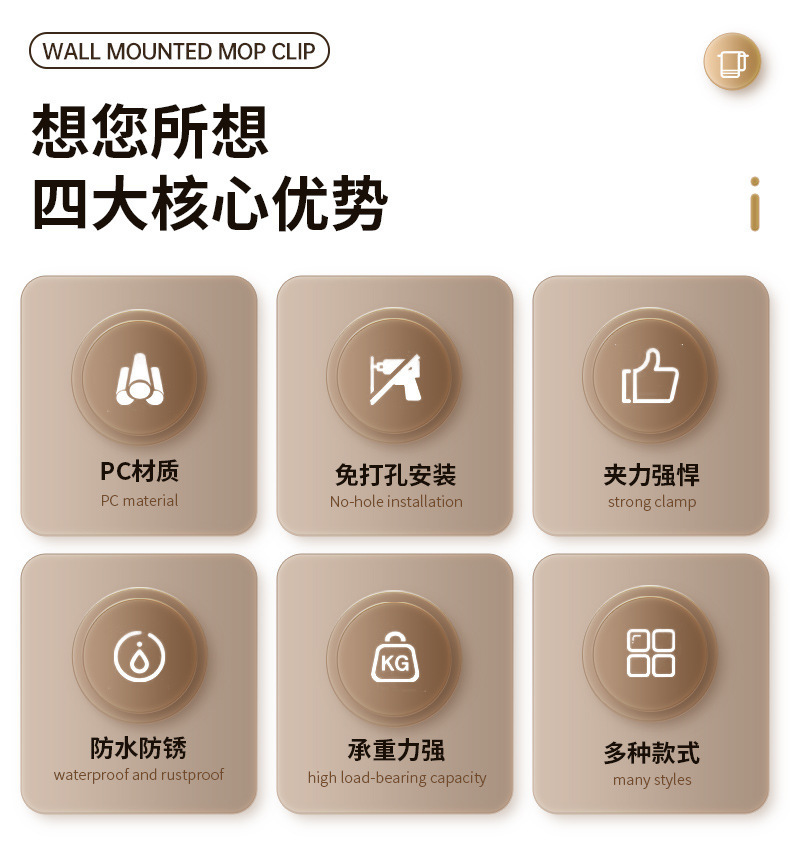 벽 교수형 흡입 유형 펀치없는 걸레 클립 벽 교수형 강력한 접착 회전 흡입 컵 걸레 선반 화장실 보관 랙