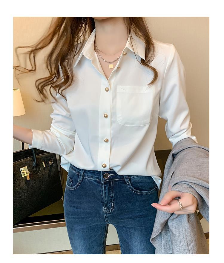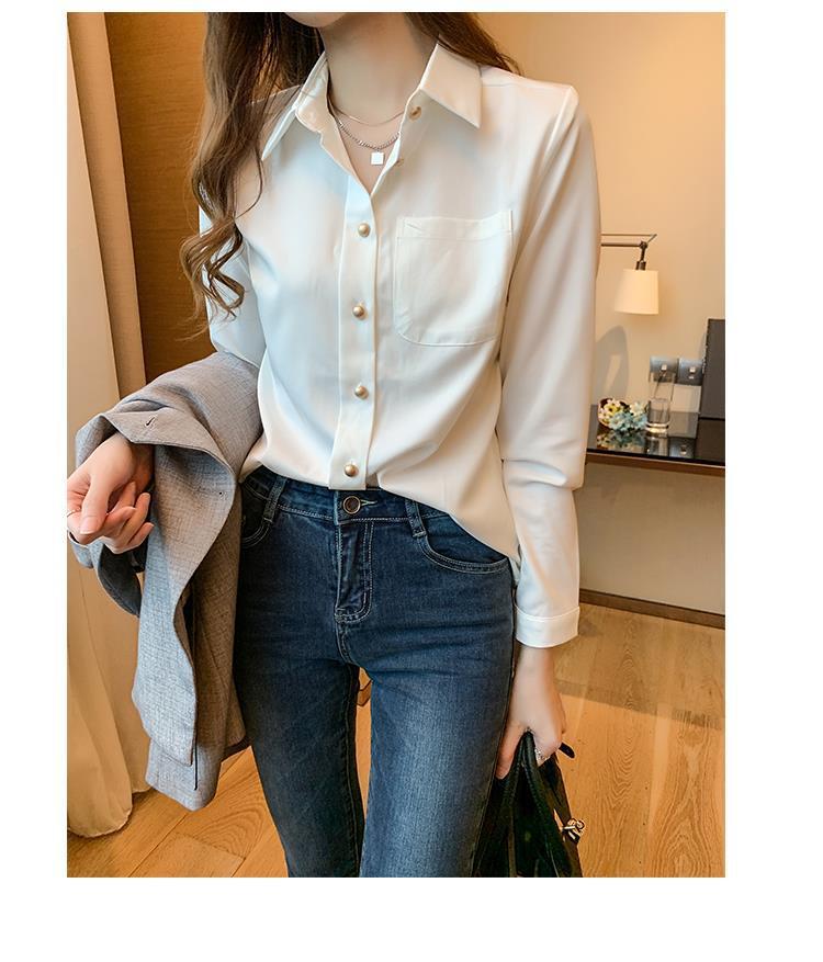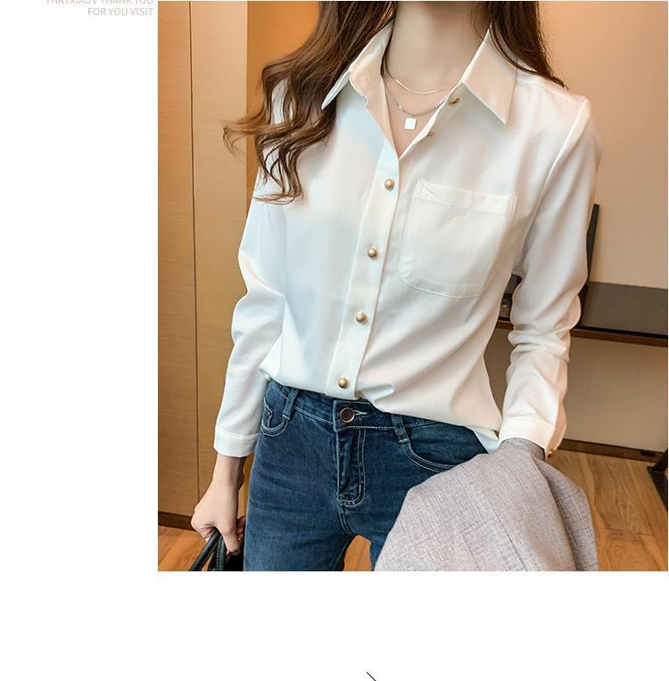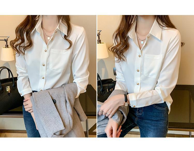 흰색 셔츠 여성 디자인 틈새 시장 2025 가을 새로운 스타일 가볍고 성숙한 셔츠 긴팔 서양식 쉬폰 셔츠 탑스토어 가기