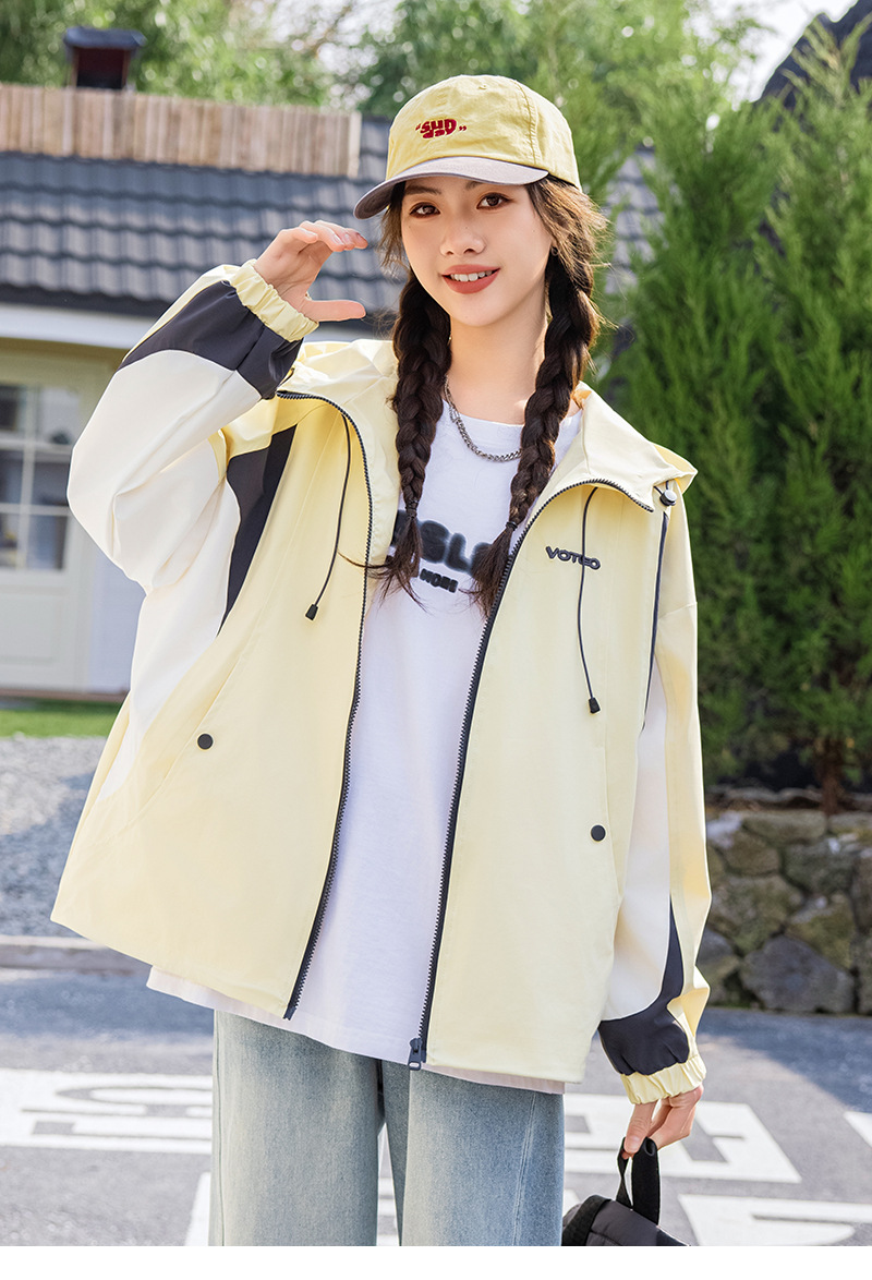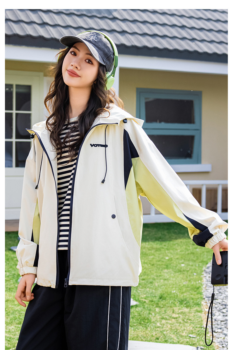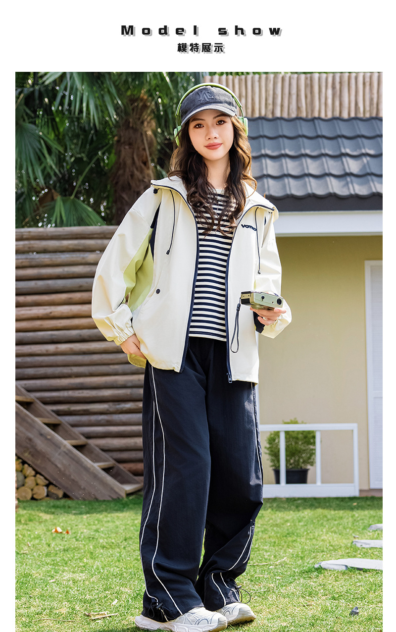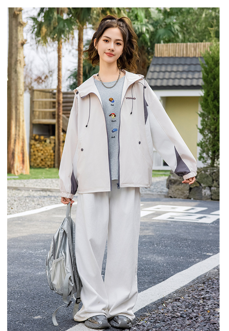 소녀 큰 어린이 코트 봄과 가을 2025 서양식 중학교 학생 야외 옷 새로운 스포츠 후드 캐주얼 의류스토어 가기