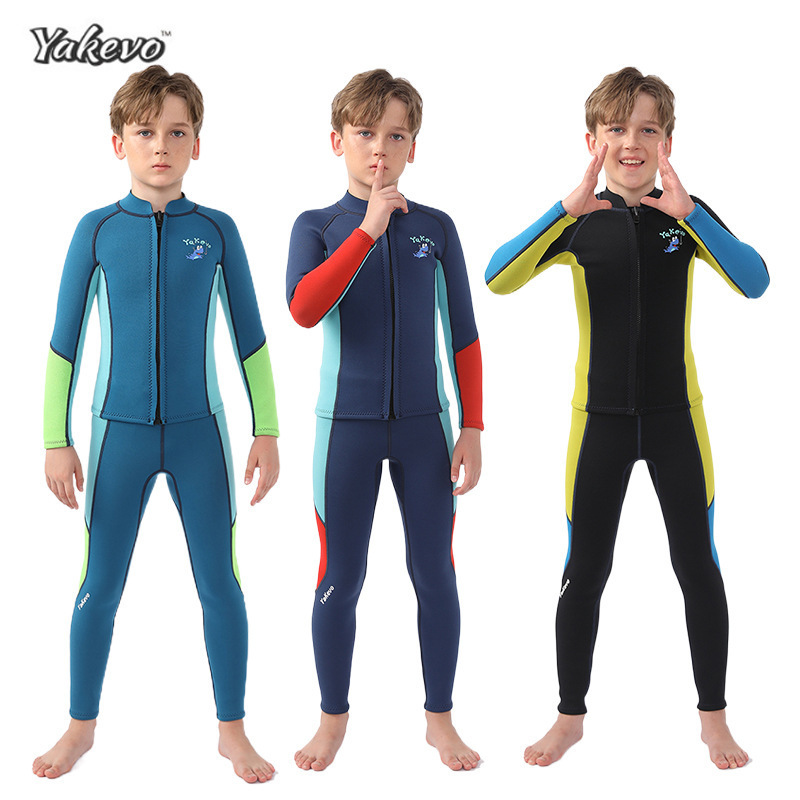 ✅ 재고 있음 어린이 잠수복 2.5mm 소년 스플릿 수영복 따뜻한 긴팔 서핑 및 스노클링 잠수복 방한스토어 가기