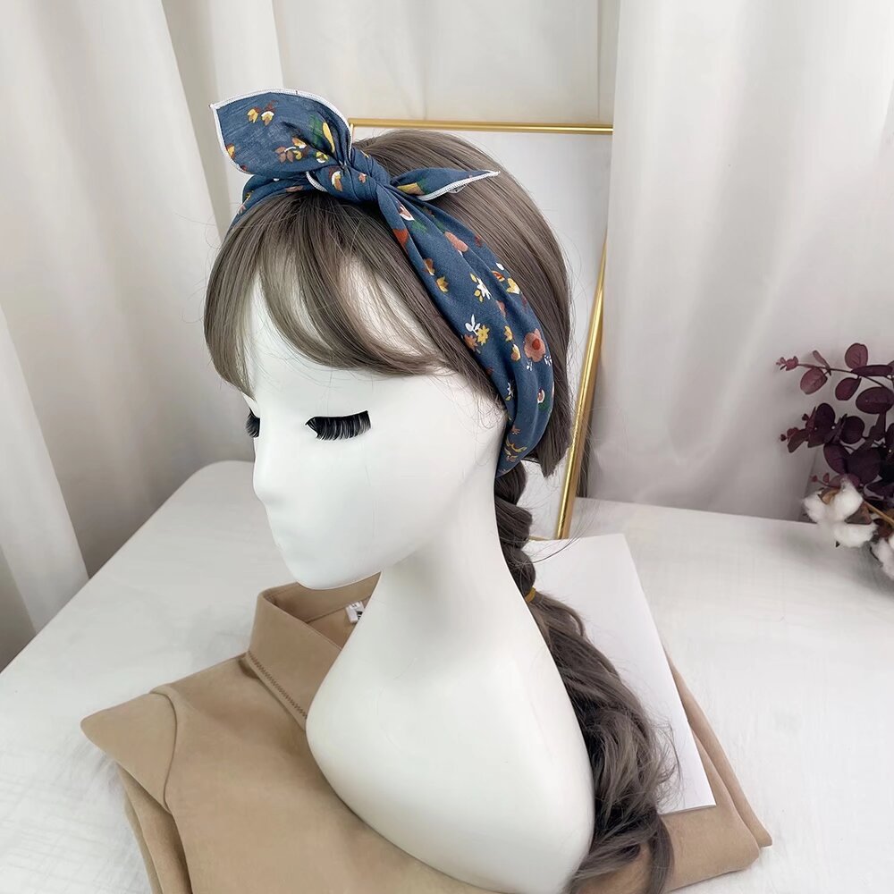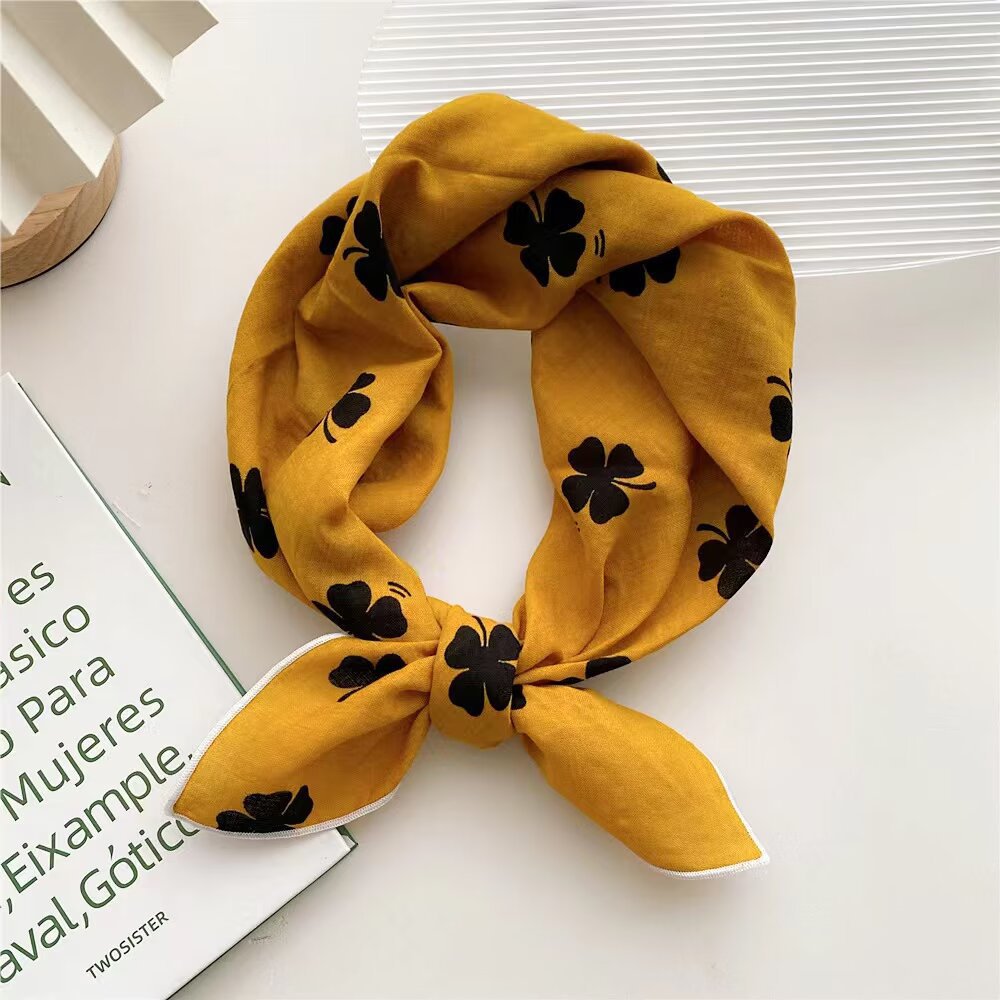 새로운 한국 패션 올 매치 코튼 실크 스카프 헤어 벨트 작은 스퀘어 스카프 여성의 봄과 가을 꽃 스카프 스카프 목 보호 스카프