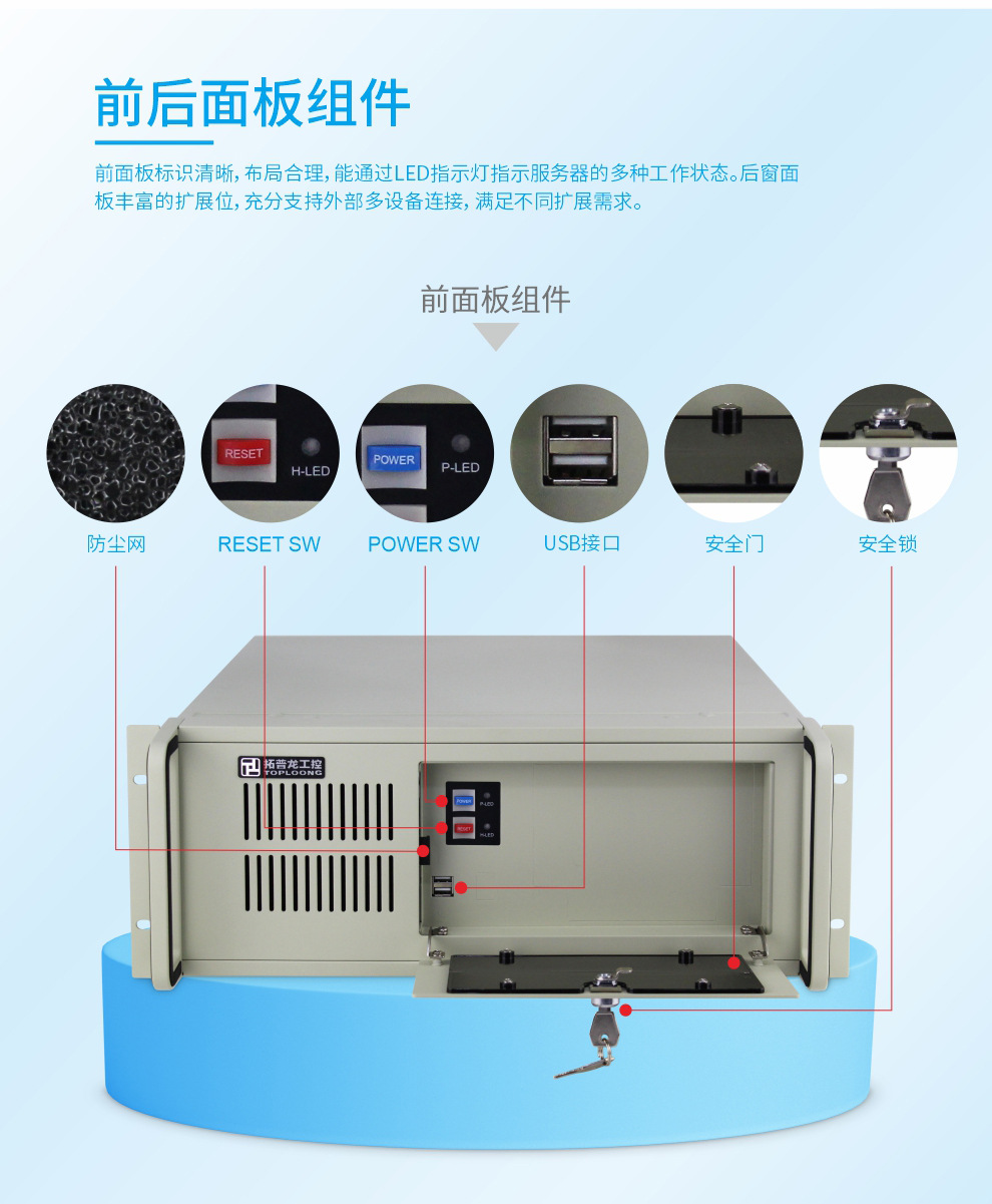 Topron TOP4502J 4U 산업 제어 서버 섀시 19 인치 산업용 컴퓨터 빈 섀시