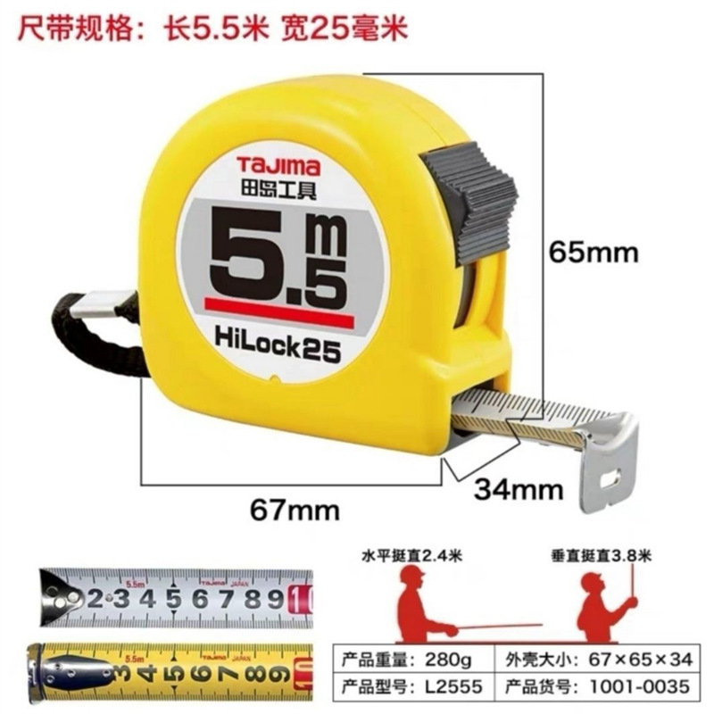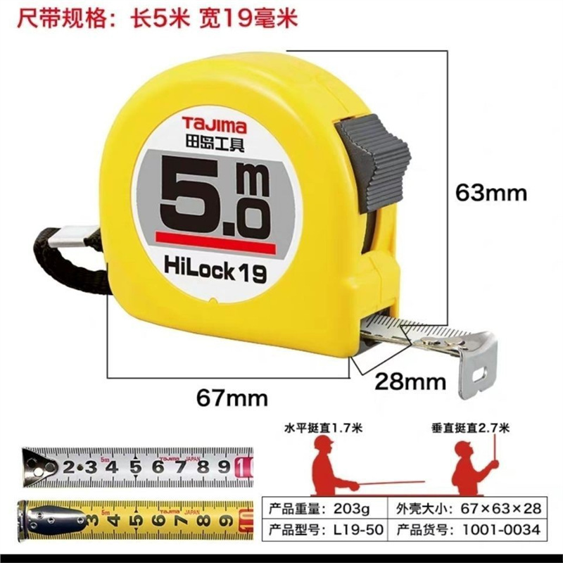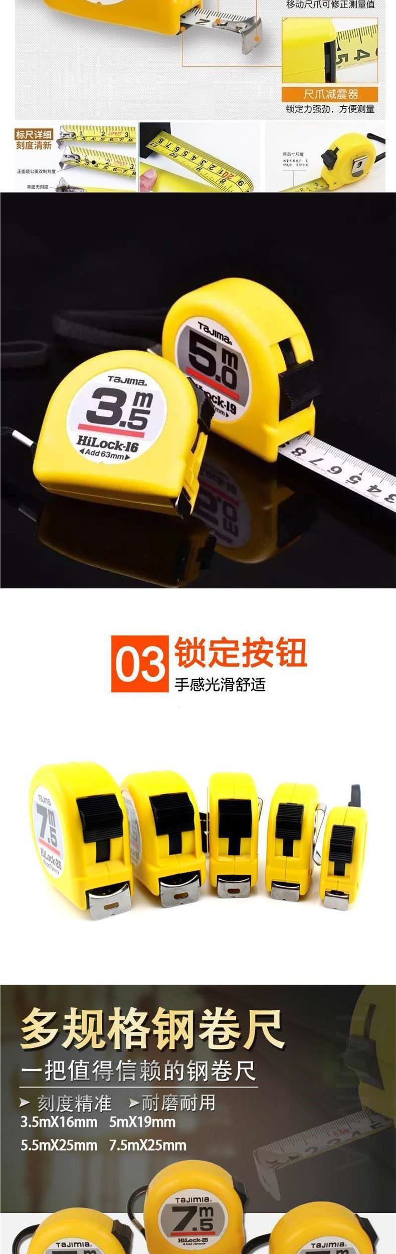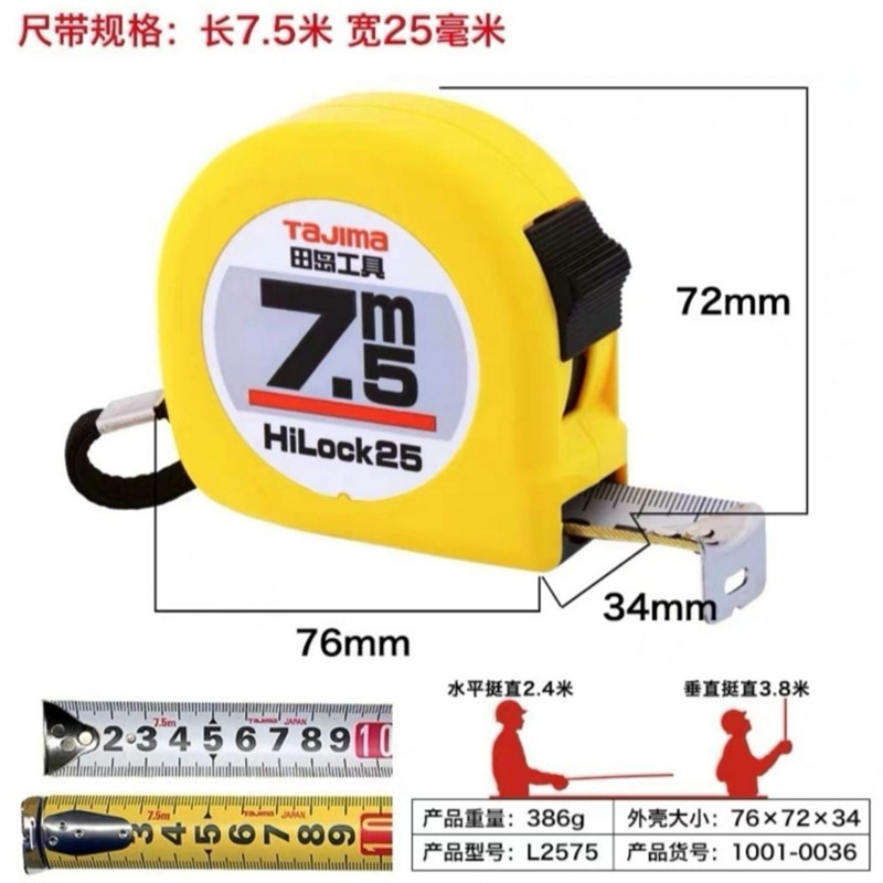 Tian Dao 테이프 측정 내마모성 통치자 3 미터 5 미터 7.5 미터 10 미터 고정밀 일본 상자 통치자 2 미터 공구 강철 테이프