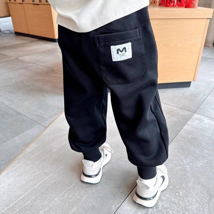 소년 바지 봄과 가을 아기 바지 남자 바지 외부 착용 바지 유행 잘 생긴 느슨한 다리 바지 편지 자수스토어 가기