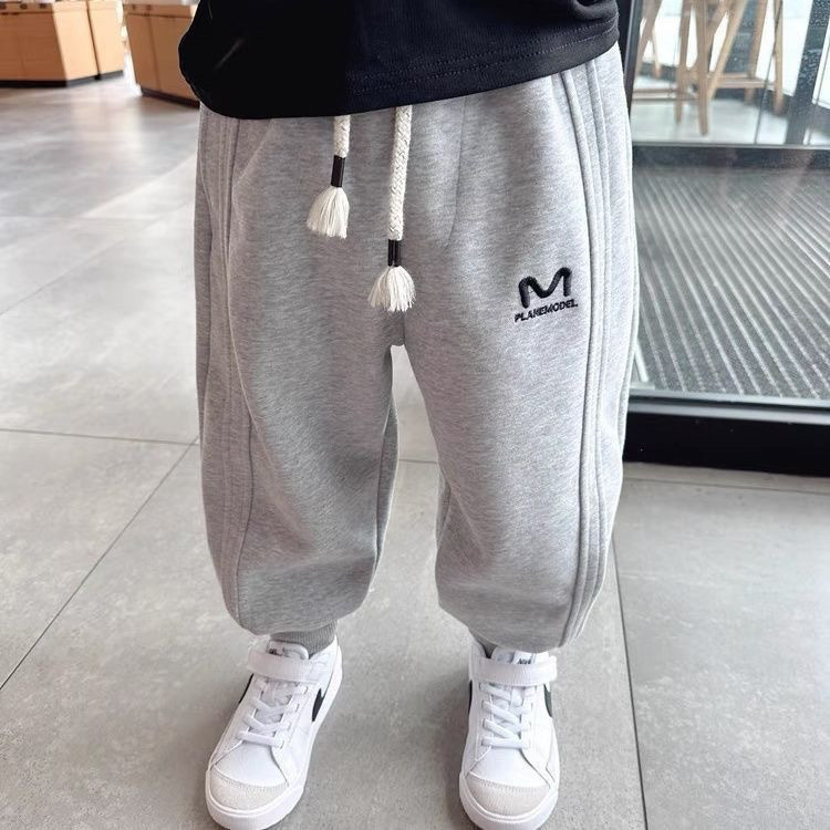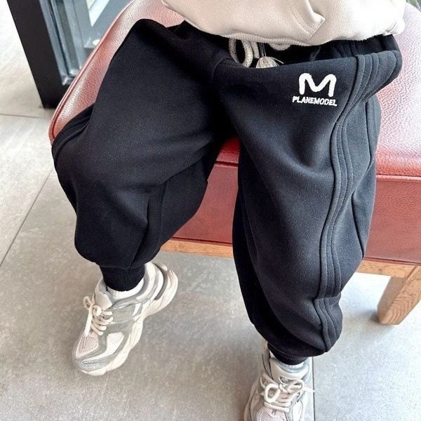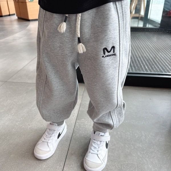 소년 바지 봄과 가을 아기 바지 남자 바지 외부 착용 바지 유행 잘 생긴 느슨한 다리 바지 편지 자수
