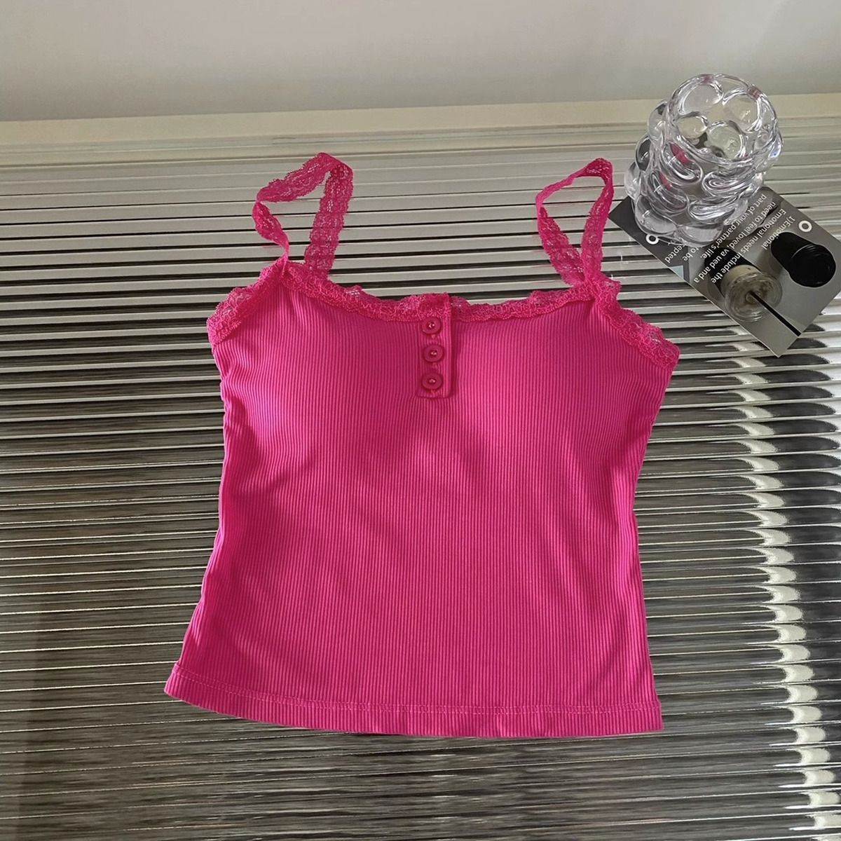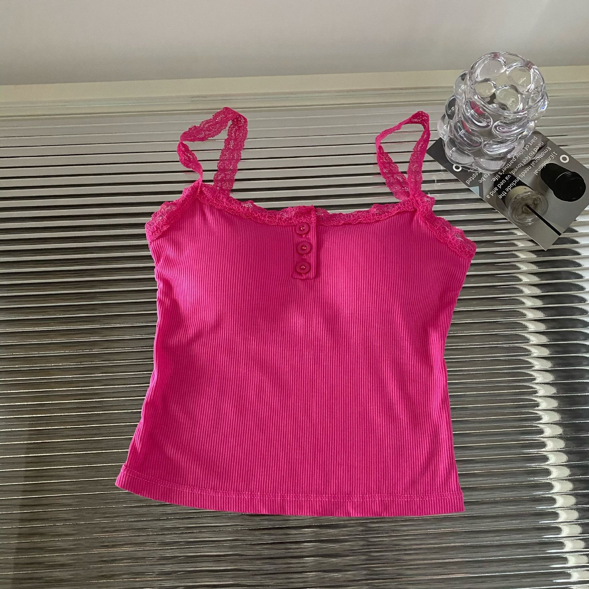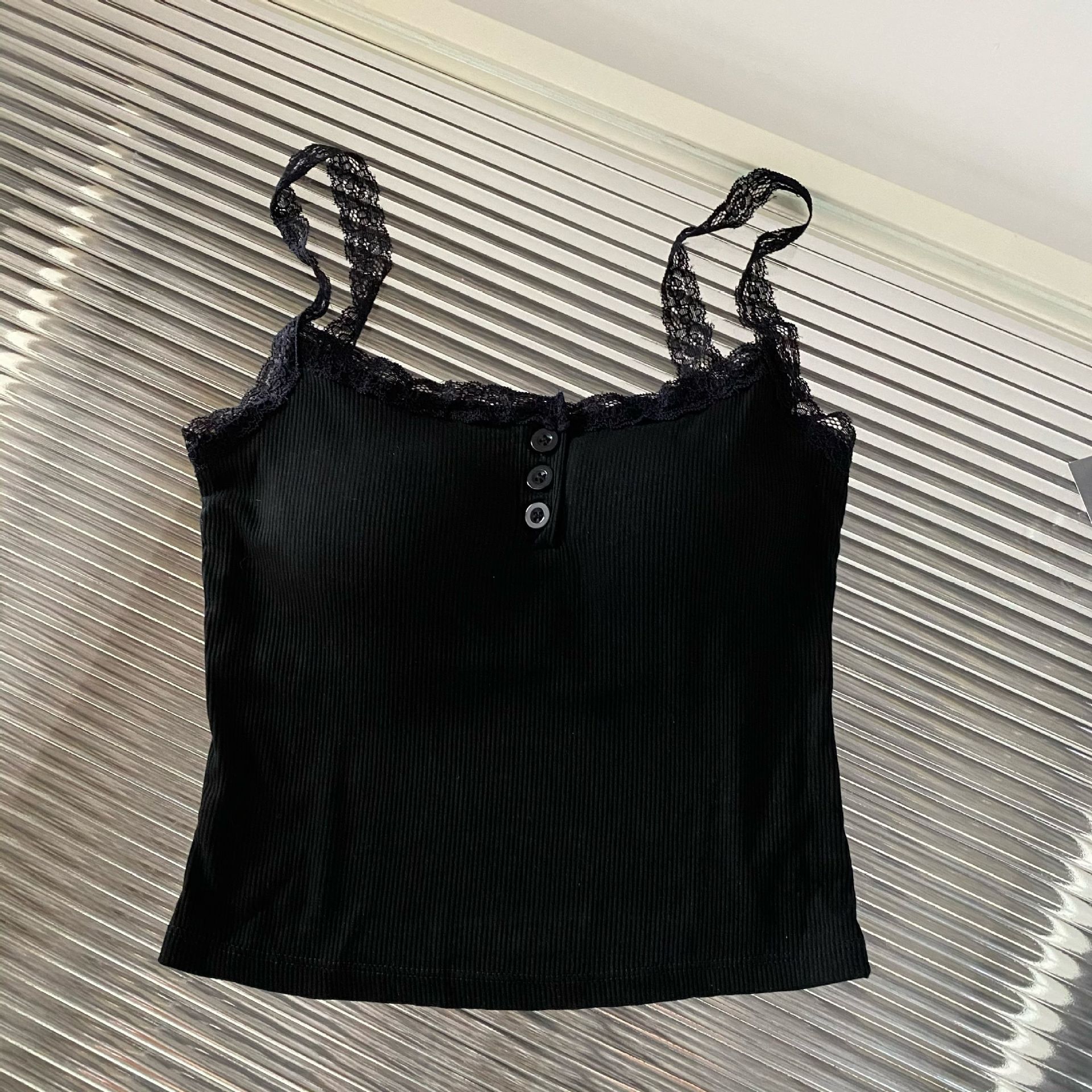 가슴 패드가 있는 여성용 레이스 캐미솔, 초봄 신상품, 이너웨어 및 아우터웨어, 순수한 섹시 스타일의 달콤한 민소매 탑