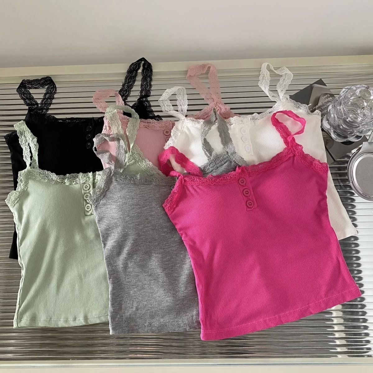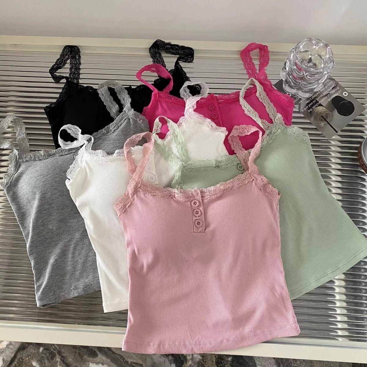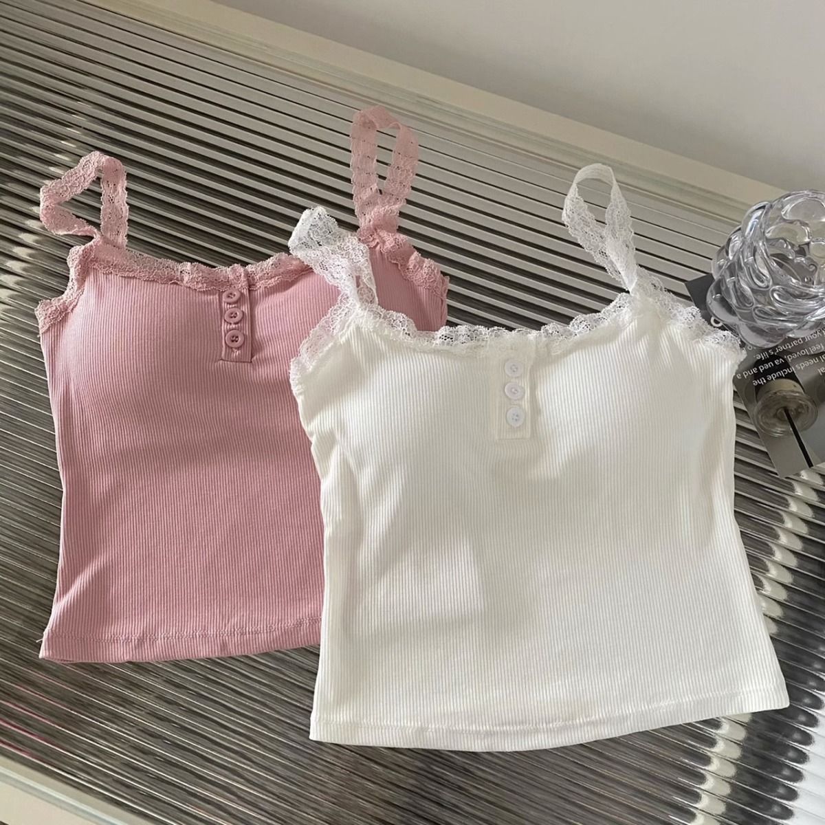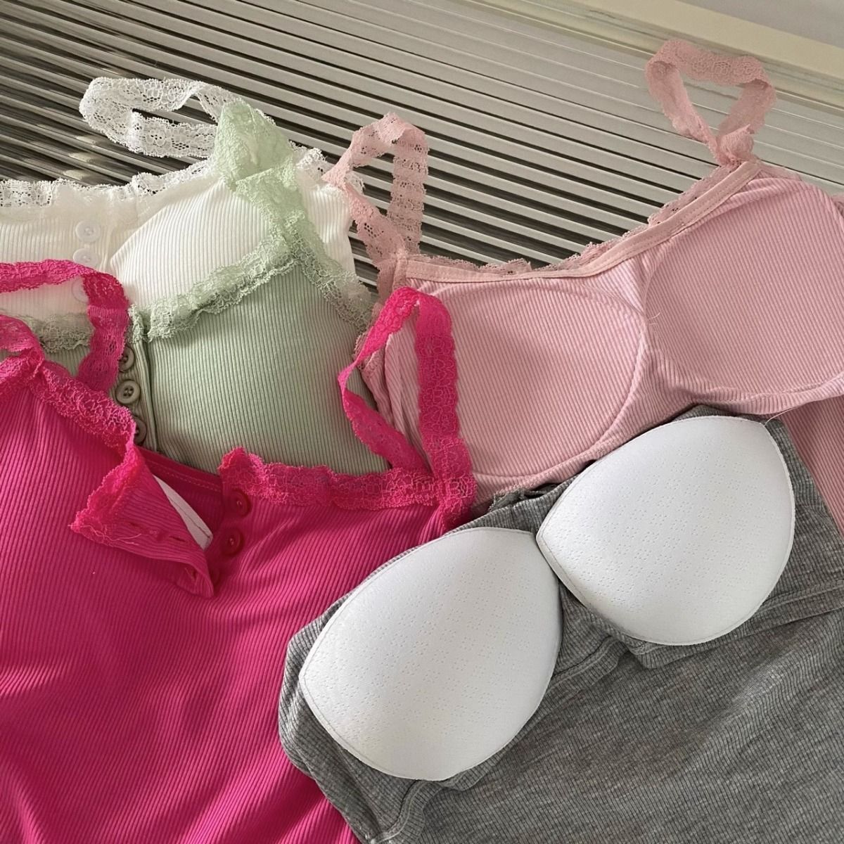 가슴 패드가 있는 여성용 레이스 캐미솔, 초봄 신상품, 이너웨어 및 아우터웨어, 순수한 섹시 스타일의 달콤한 민소매 탑스토어 가기