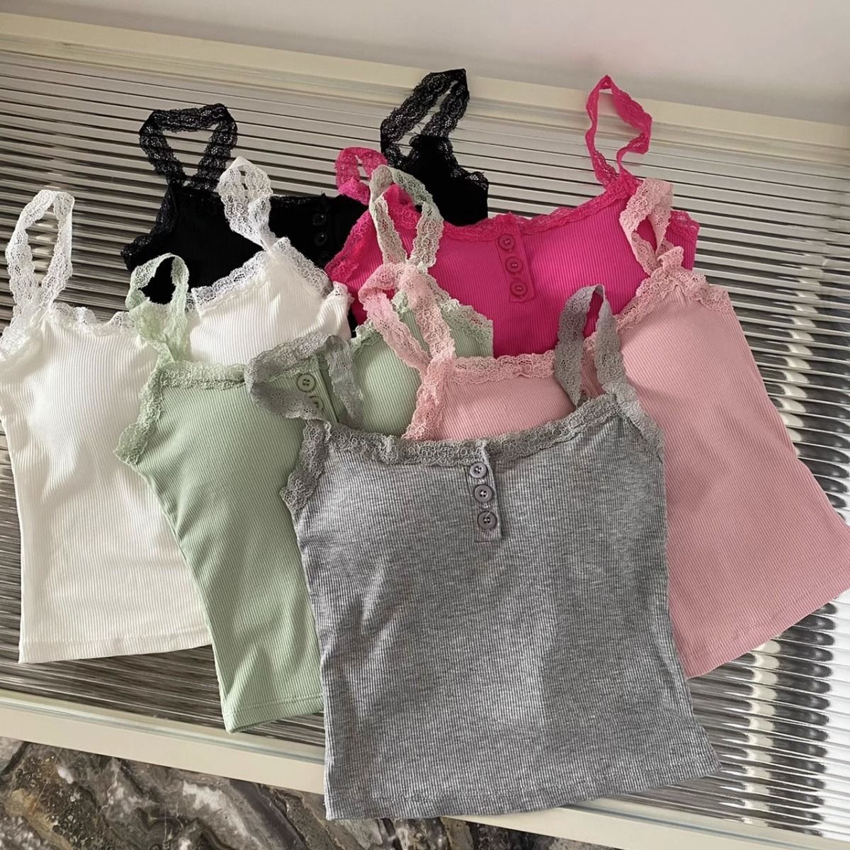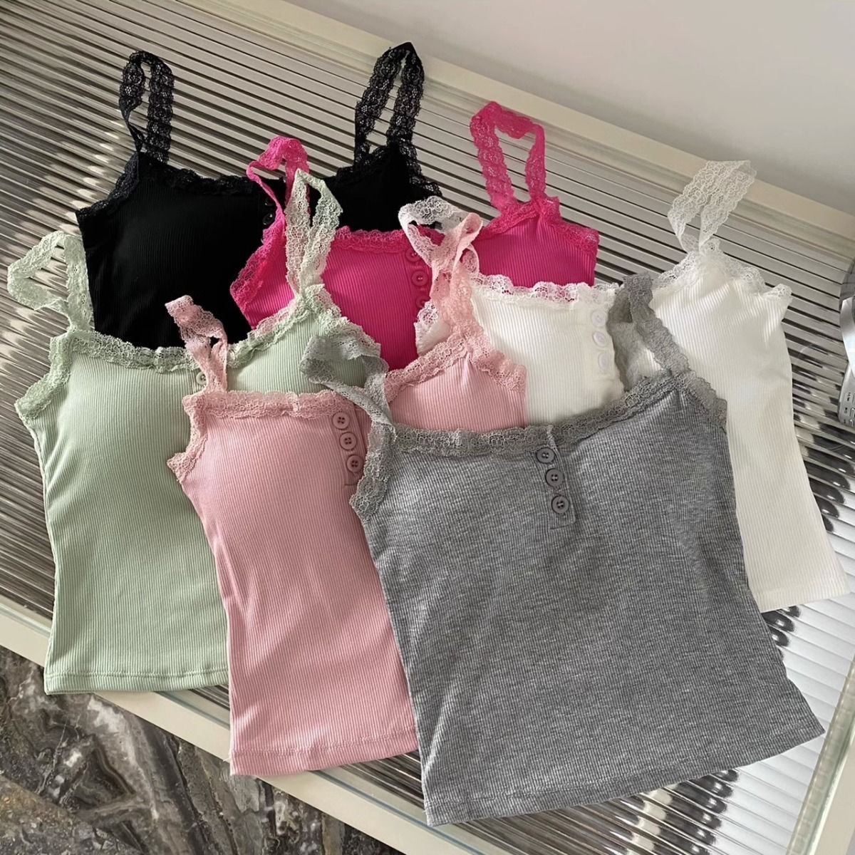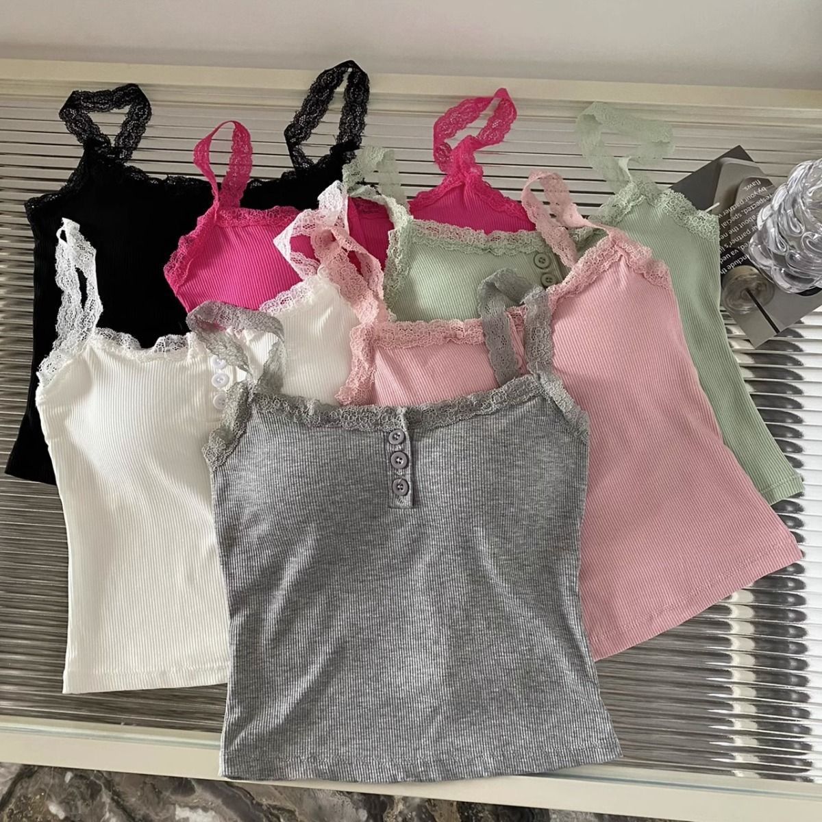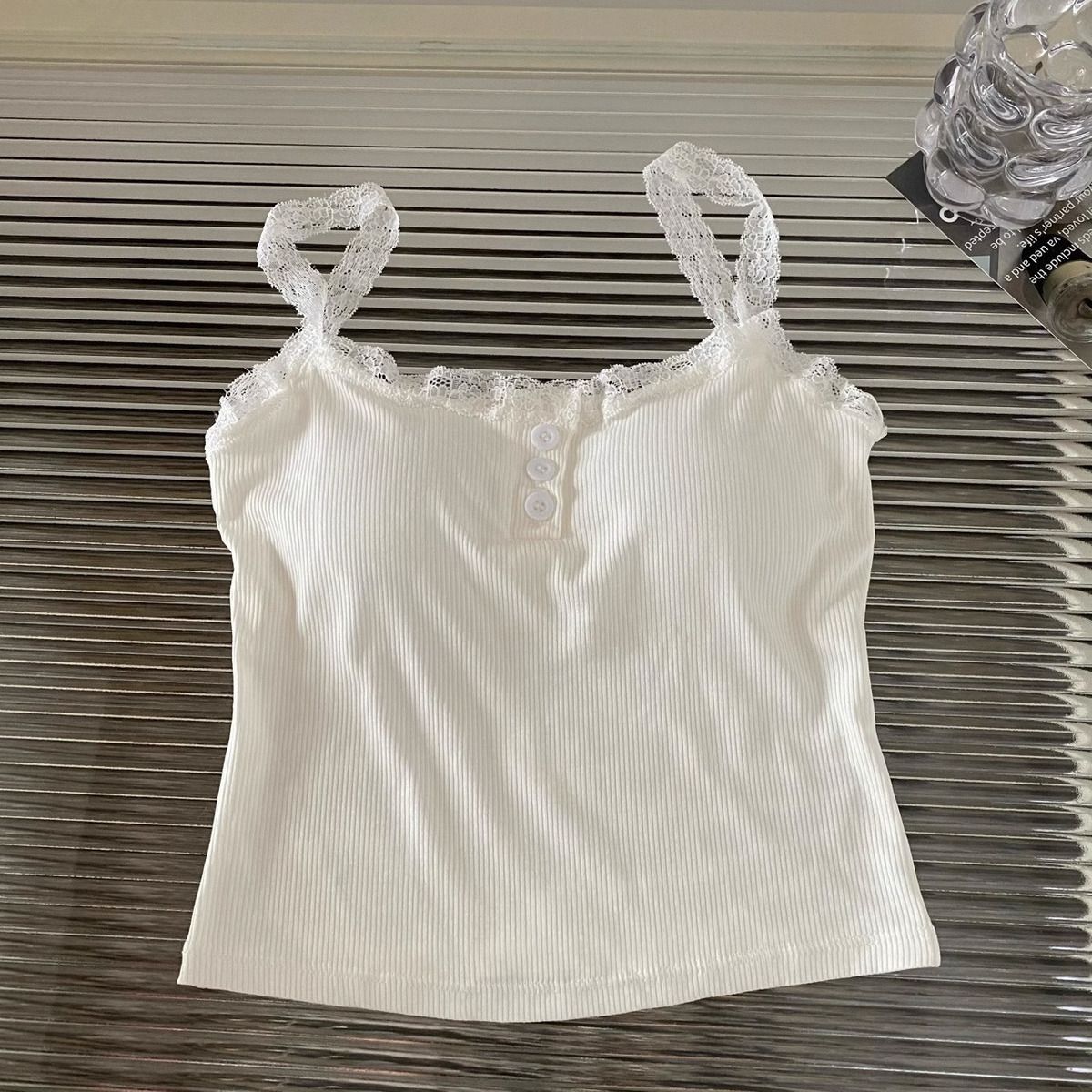가슴 패드가 있는 여성용 레이스 캐미솔, 초봄 신상품, 이너웨어 및 아우터웨어, 순수한 섹시 스타일의 달콤한 민소매 탑스토어 가기