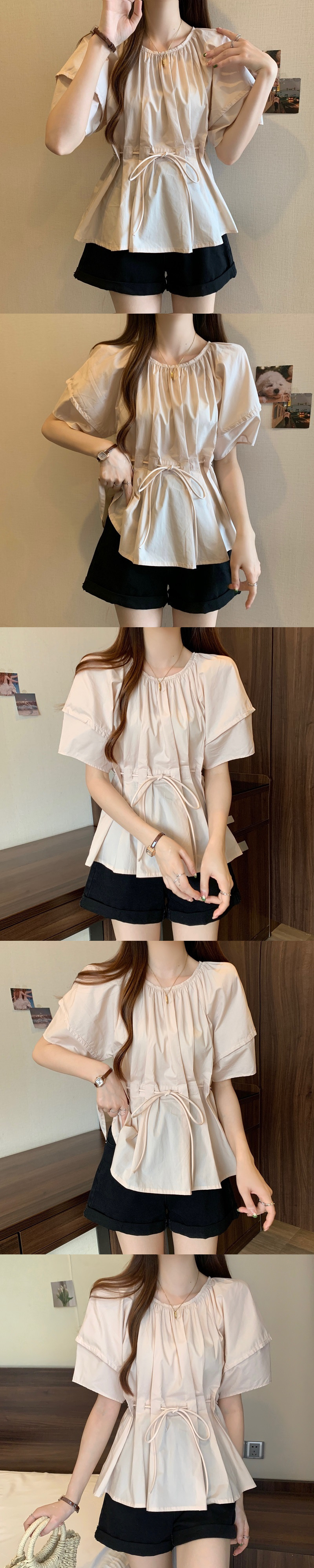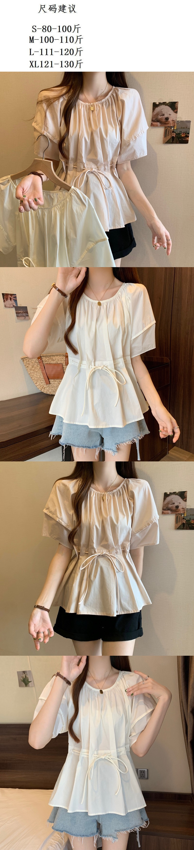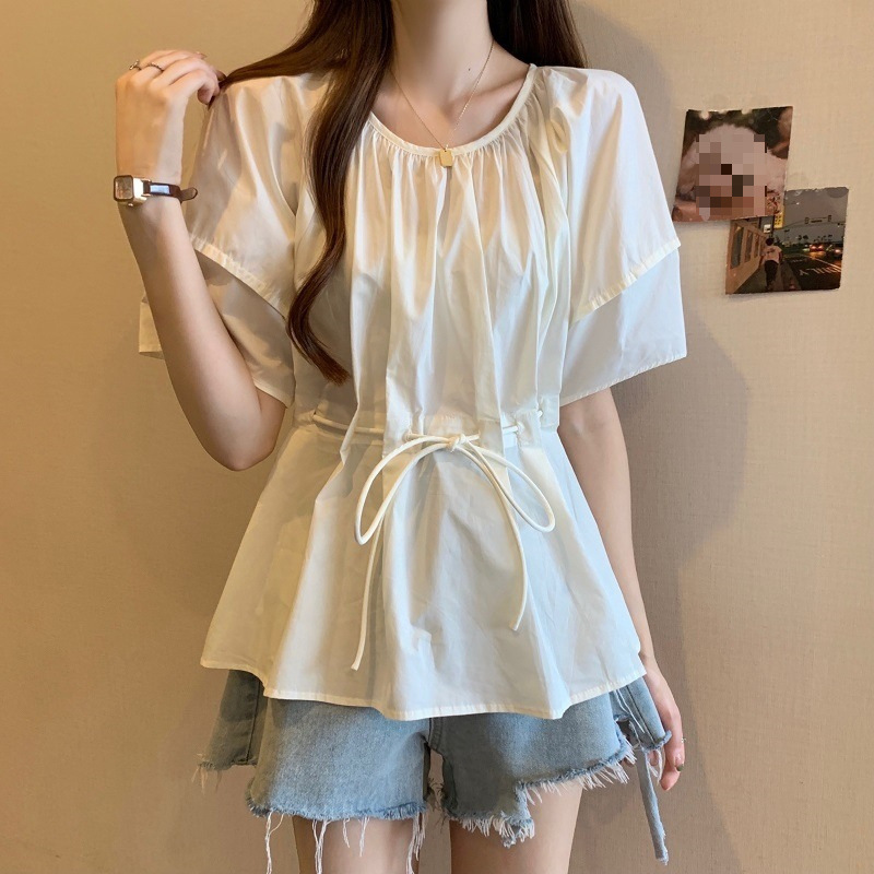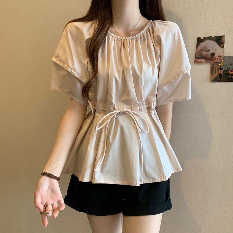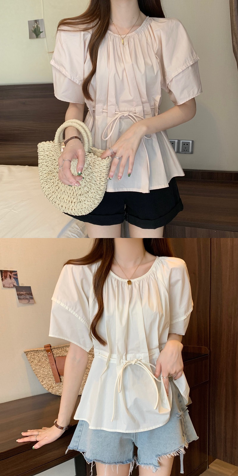 버블 짧은 소매 여성 2025 여름 새로운 한국 스타일 유행 올 매치 타이트 허리 슬리밍 프랑스 스타일 디자인 센스 탑 트렌디스토어 가기