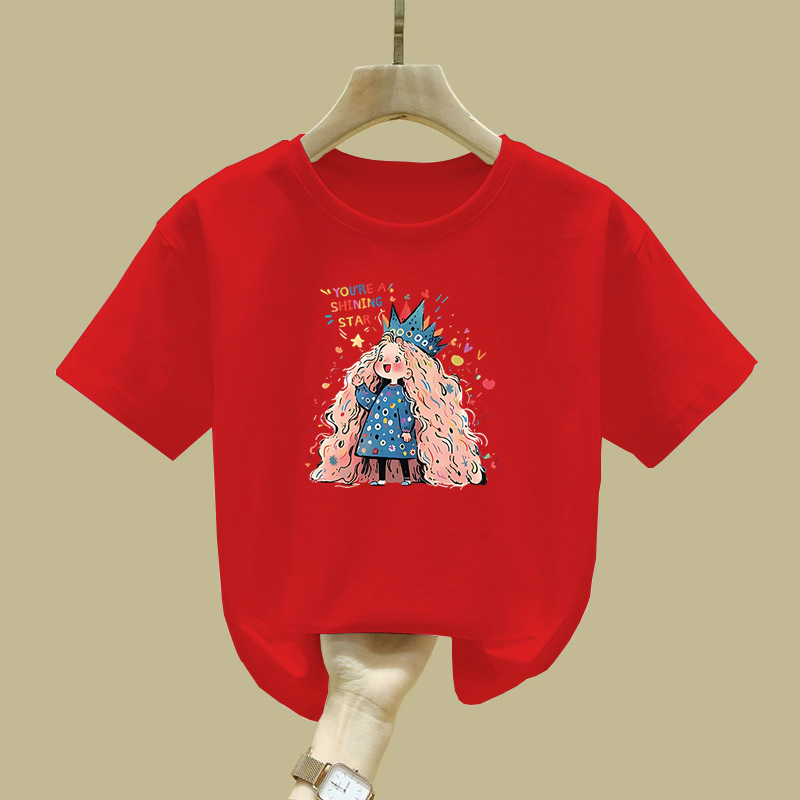 2455 # 소년과 소녀 반팔 티셔츠 여름 새로운 중대형 어린이 서양식 순면 어린이 편안한 통기성 티셔츠 탑스토어 가기