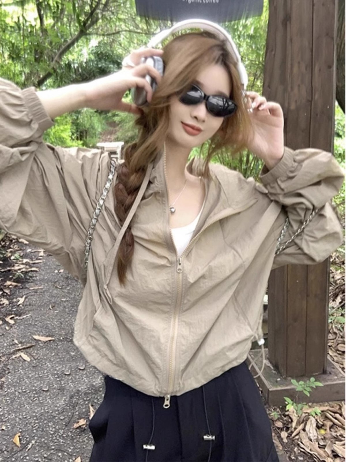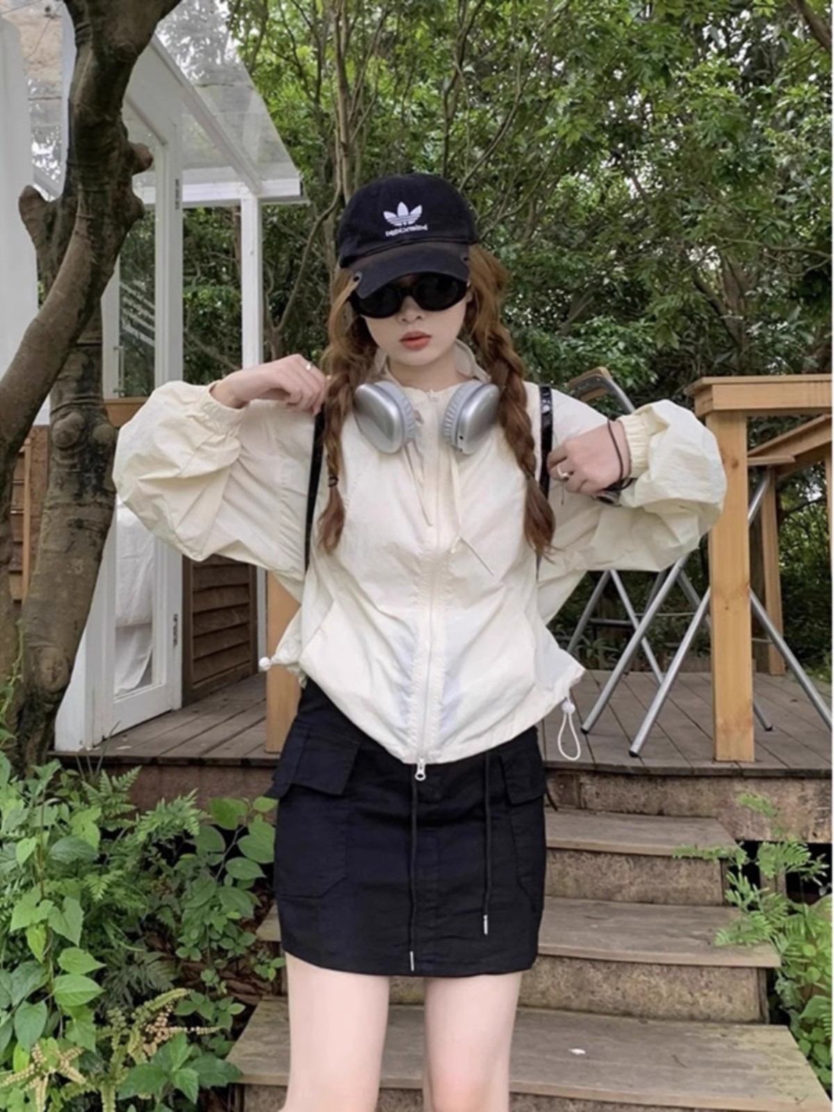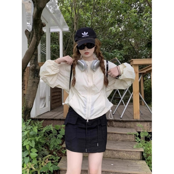 Jin Jing Guan Tu [오리지널 썬 스크린 코트 패브릭] 미국 달콤한 쿨 윈드 툴링 재킷 선스크린 재킷