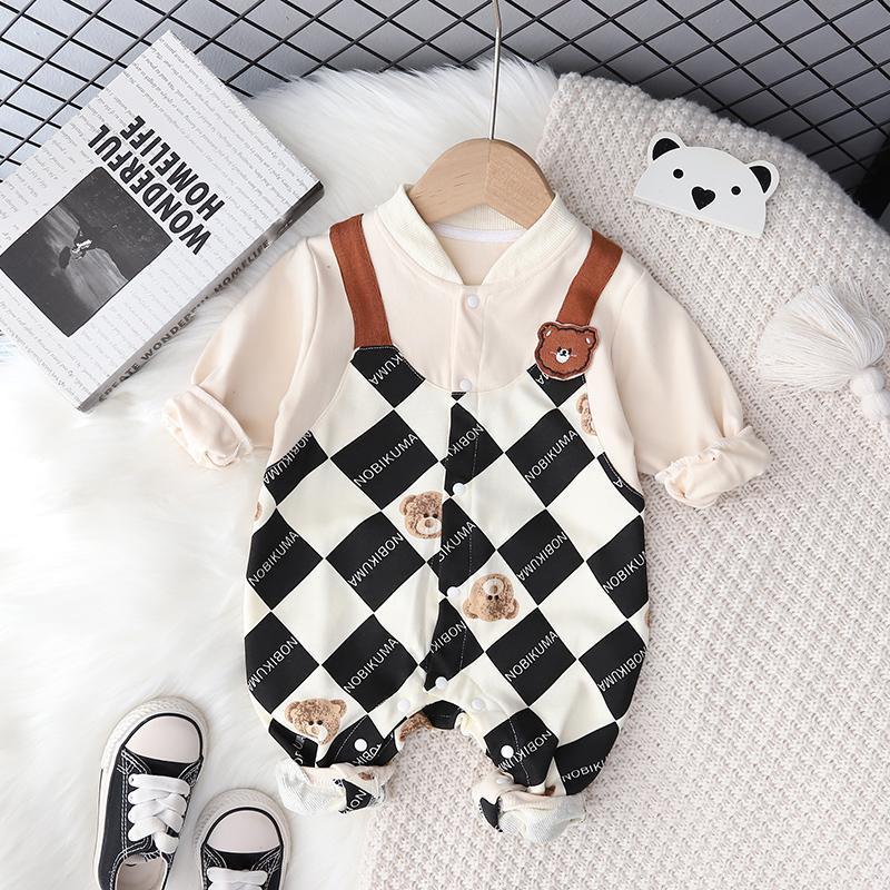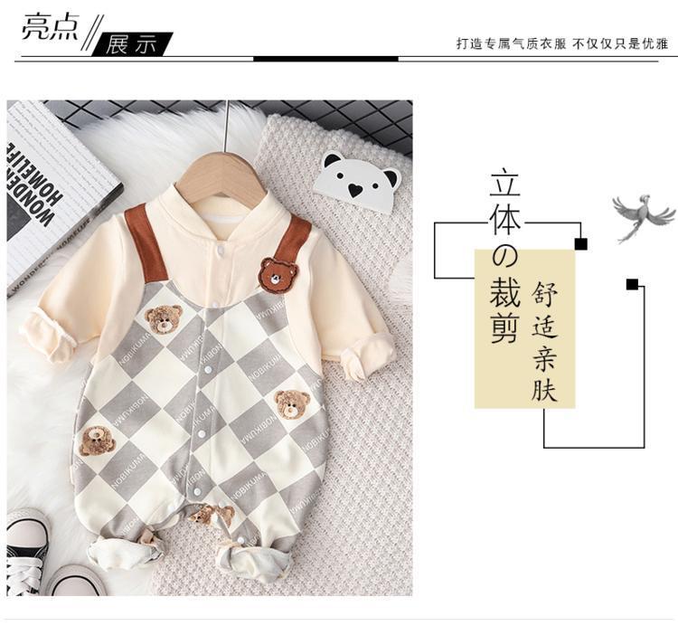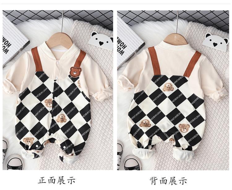 아기의 점프 수트 봄과 가을 순면 등반 착용 0-18 개월 아기의 가짜 투피스 귀여운 외국식 외출복스토어 가기