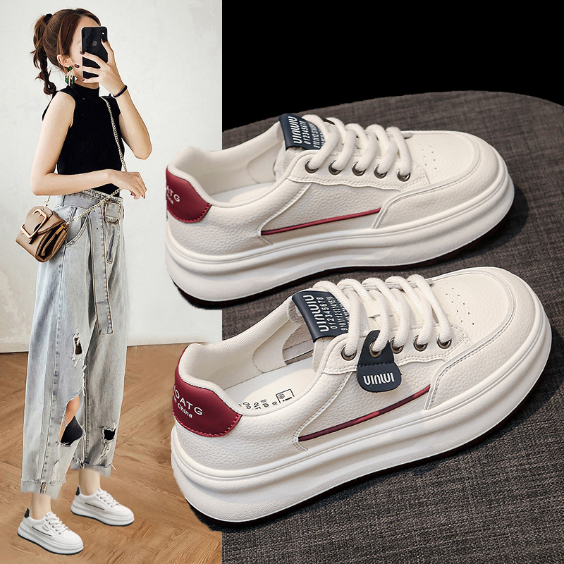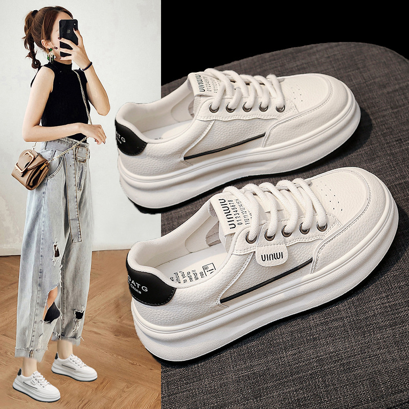 정품 가죽 흰색 신발 여성의 2025 새로운 봄 폭발 두꺼운 슬래브 신발 여성 스포츠 캐주얼 올 매치 여성 신발스토어 가기
