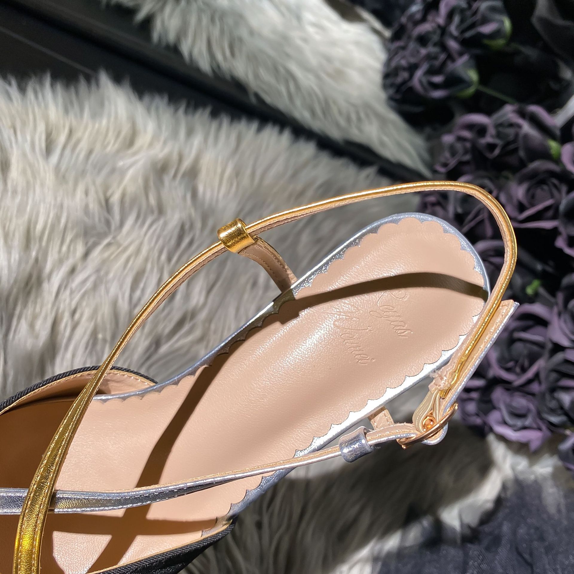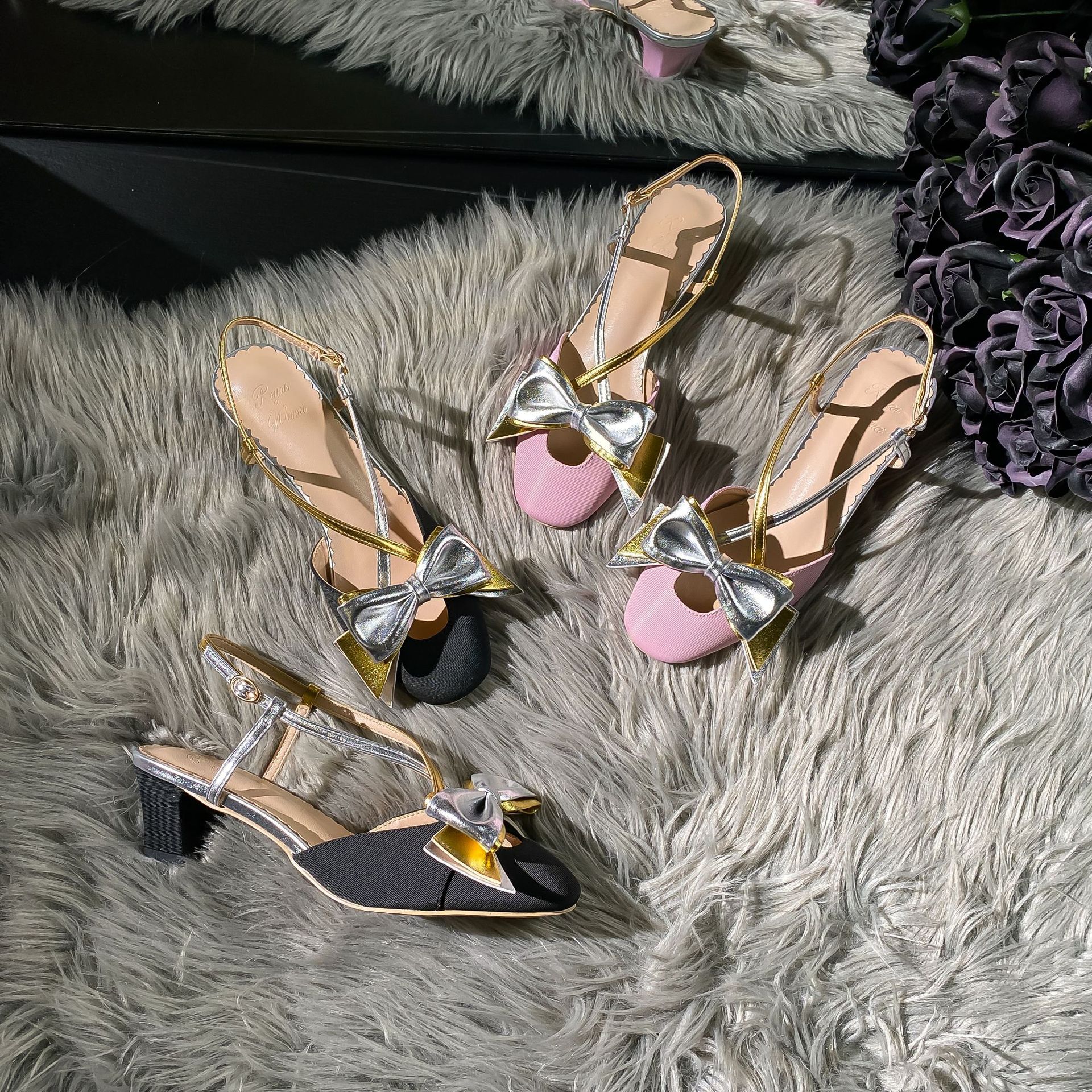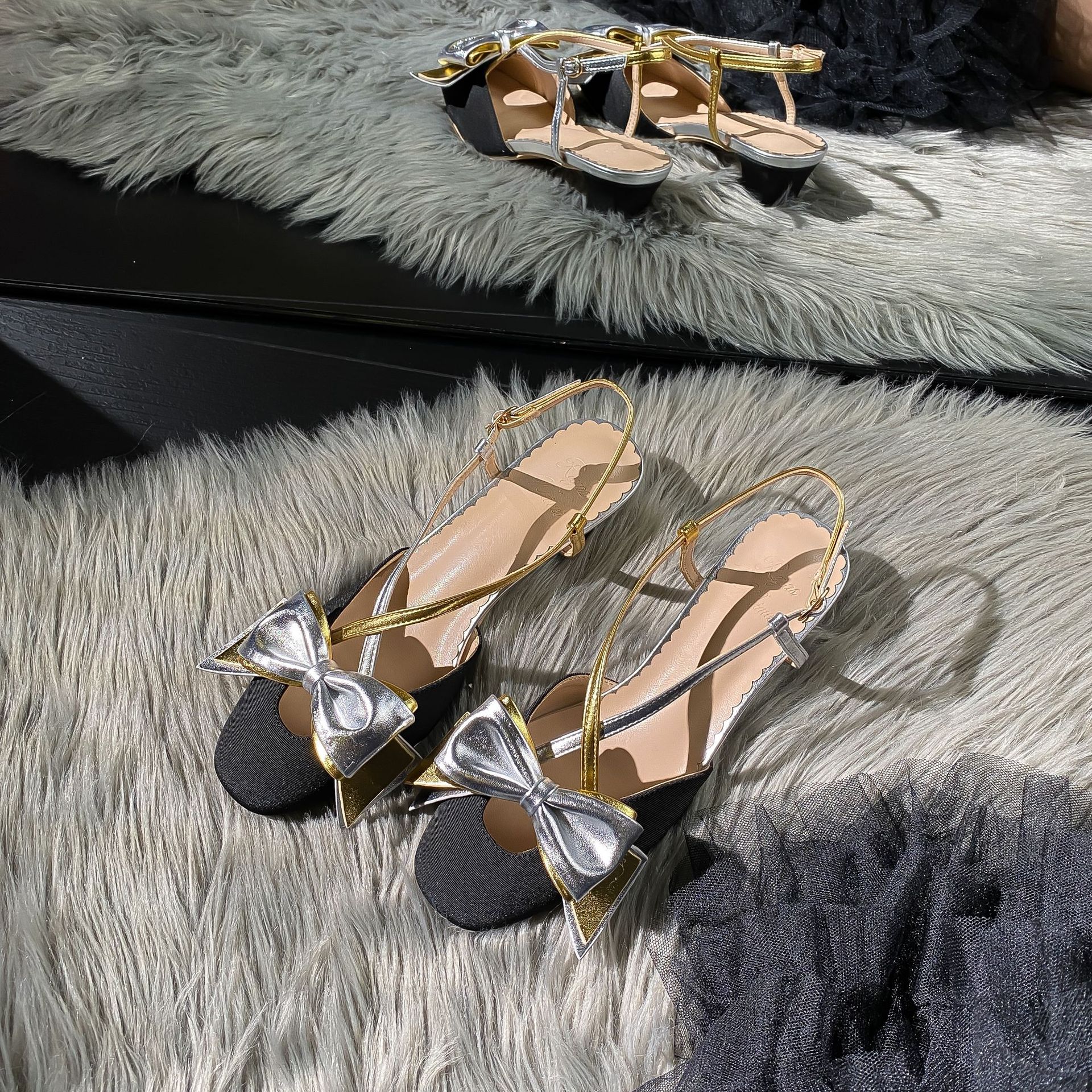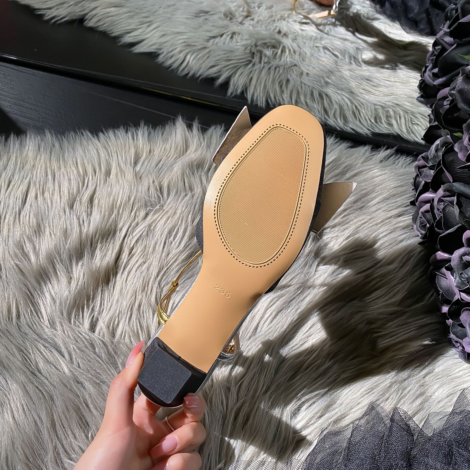 양가죽 버전! 프렌치 보우 중공 프린트 하이힐 샌들 2025 새로운 부드럽고 달콤한 백 빈 하이힐스토어 가기
