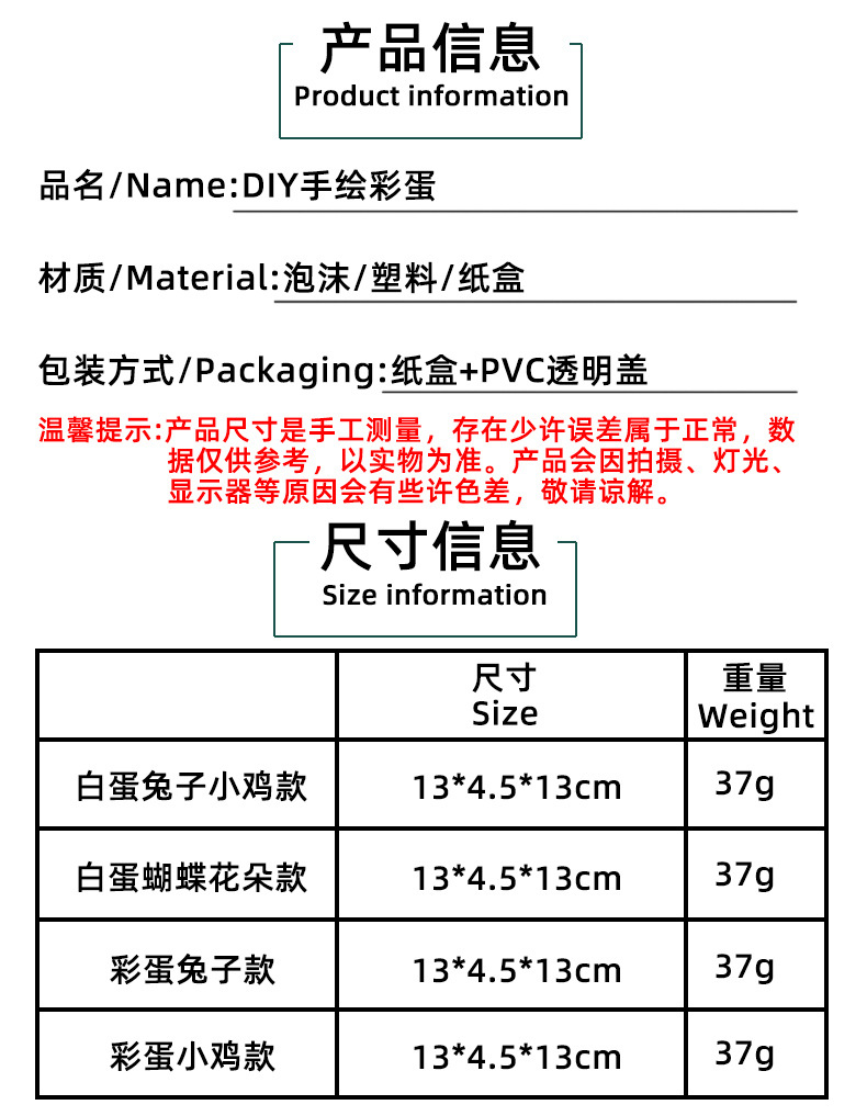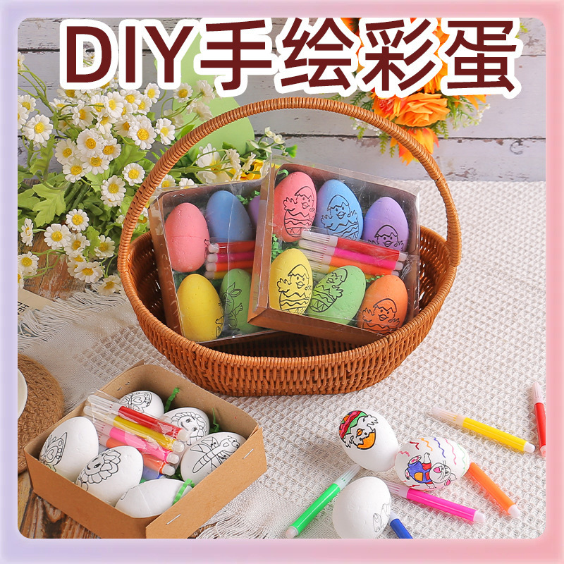 ✅국경 간 뜨거운 판매 부활절 DIY 손으로 그린 계란 2025 만화 토끼 계란 어린이 수제 선물 배치스토어 가기