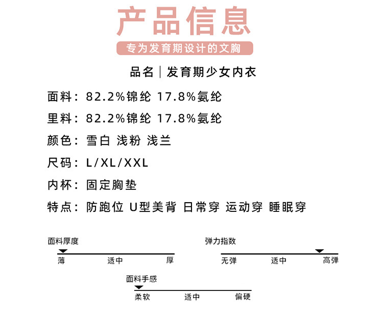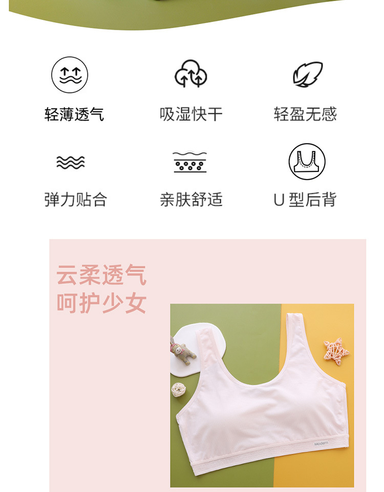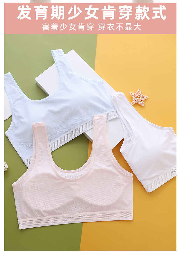 여아용 브라, 스포츠 통기성 고정컵, 중학생 및 고등학생 조끼, 여름용 책 스타일 학생 발달 기간 속옷스토어 가기