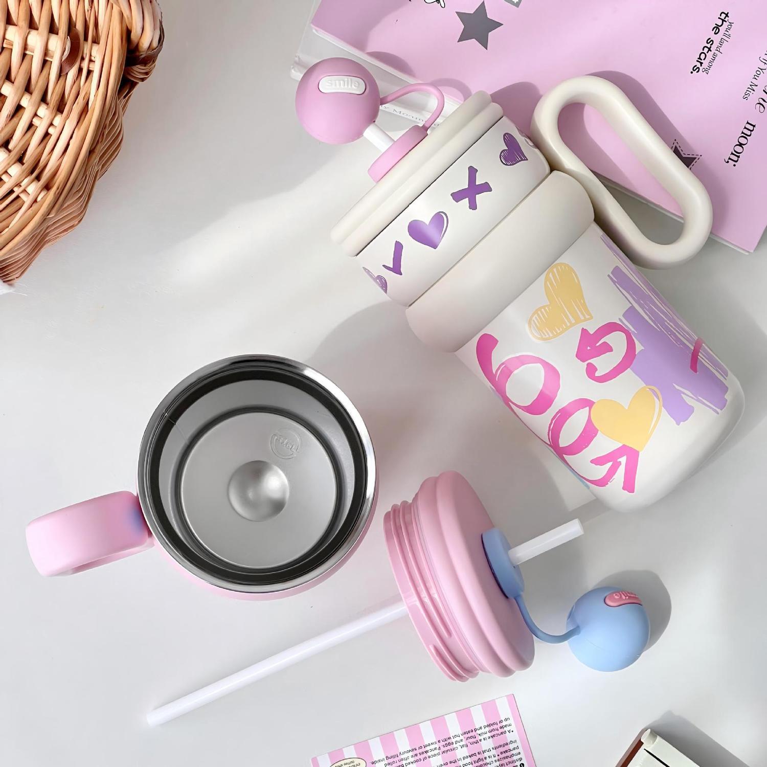 ✅316 스테인레스 스틸 보온병 컵 걸스 고 가치 데스크탑 컵 대용량 귀여운 밀짚 빅 맥 워터 컵