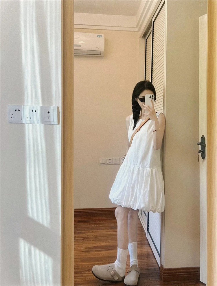 한국 스타일 흰색 민소매 조끼 원피스 여성 여름 부드러운 스타일 우아한 치마 느슨한 꽃 버드 짧은 치마스토어 가기