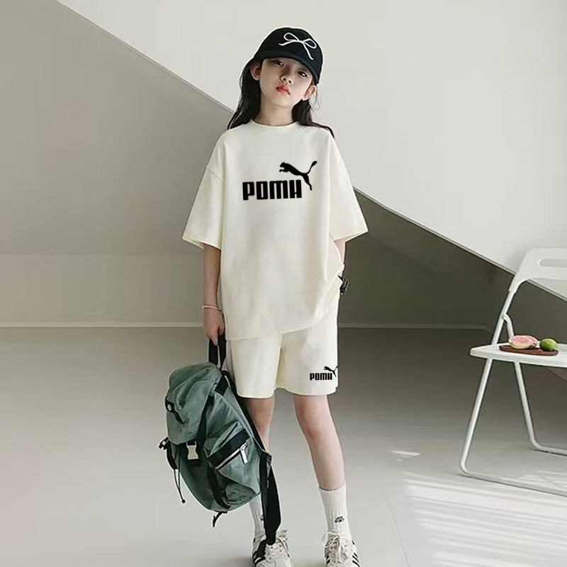 국경 간 여름 대학 스타일 여자 레저 스포츠 세트 어린이 느슨한 유행 브랜드 반팔 티셔츠 투피스 세트