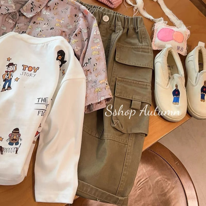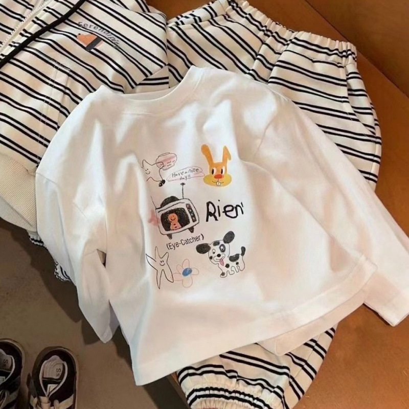 [점포 판매] 봄 · 가을 어린이 새 한국식 만화 인쇄면 느슨한 긴소매 남녀 올매치