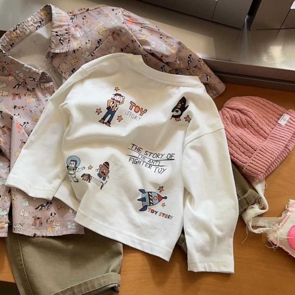 [점포 판매] 봄 · 가을 어린이 새 한국식 만화 인쇄면 느슨한 긴소매 남녀 올매치스토어 가기
