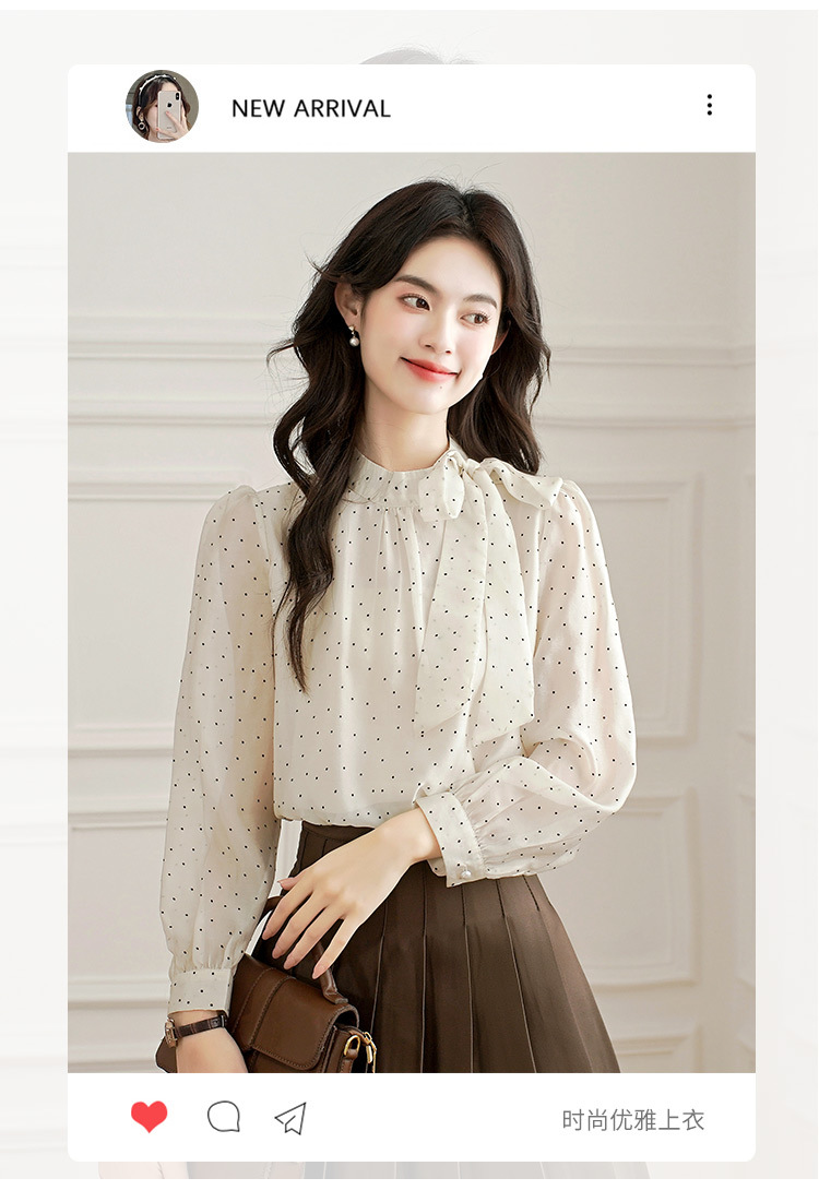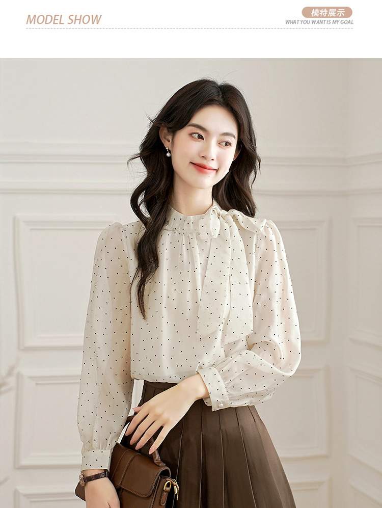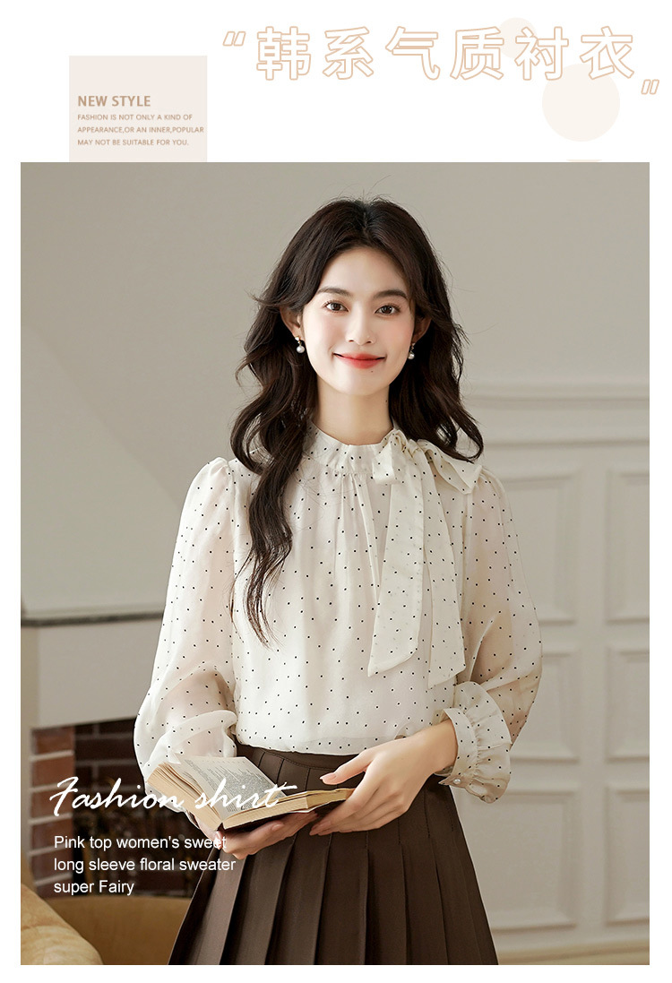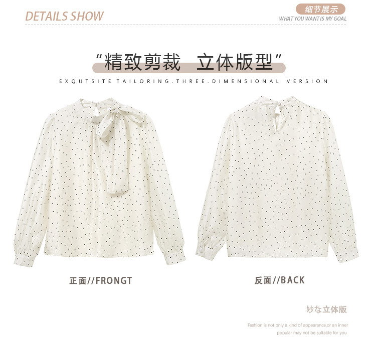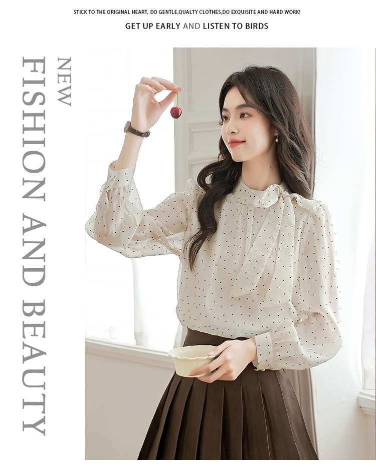 2025 봄 새로운 프랑스 달콤한 폴라 도트 셔츠 여성용 활 사이드 스트랩 쉬폰 셔츠 탑스토어 가기