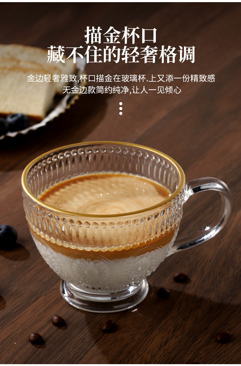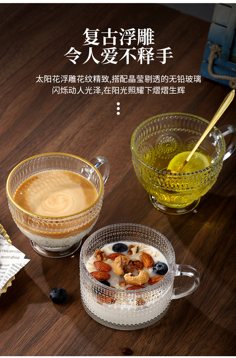 양각 해바라기 아침 식사 그릇 높은 색상 가치 유리 대형 용량 잉크 요구르트 그릇 손잡이 가정용 매트 그릇스토어 가기