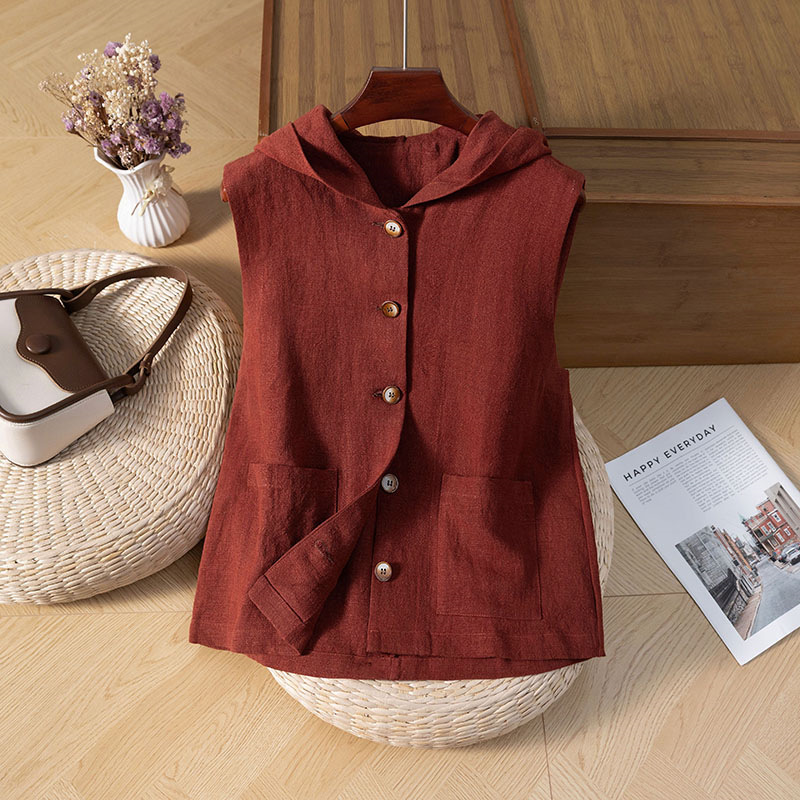 빈티지 예술적 캐주얼 우아한 둥근 목 민소매 느슨한 면화와 리넨 조끼 여성의 새로운 조끼 민소매 조끼