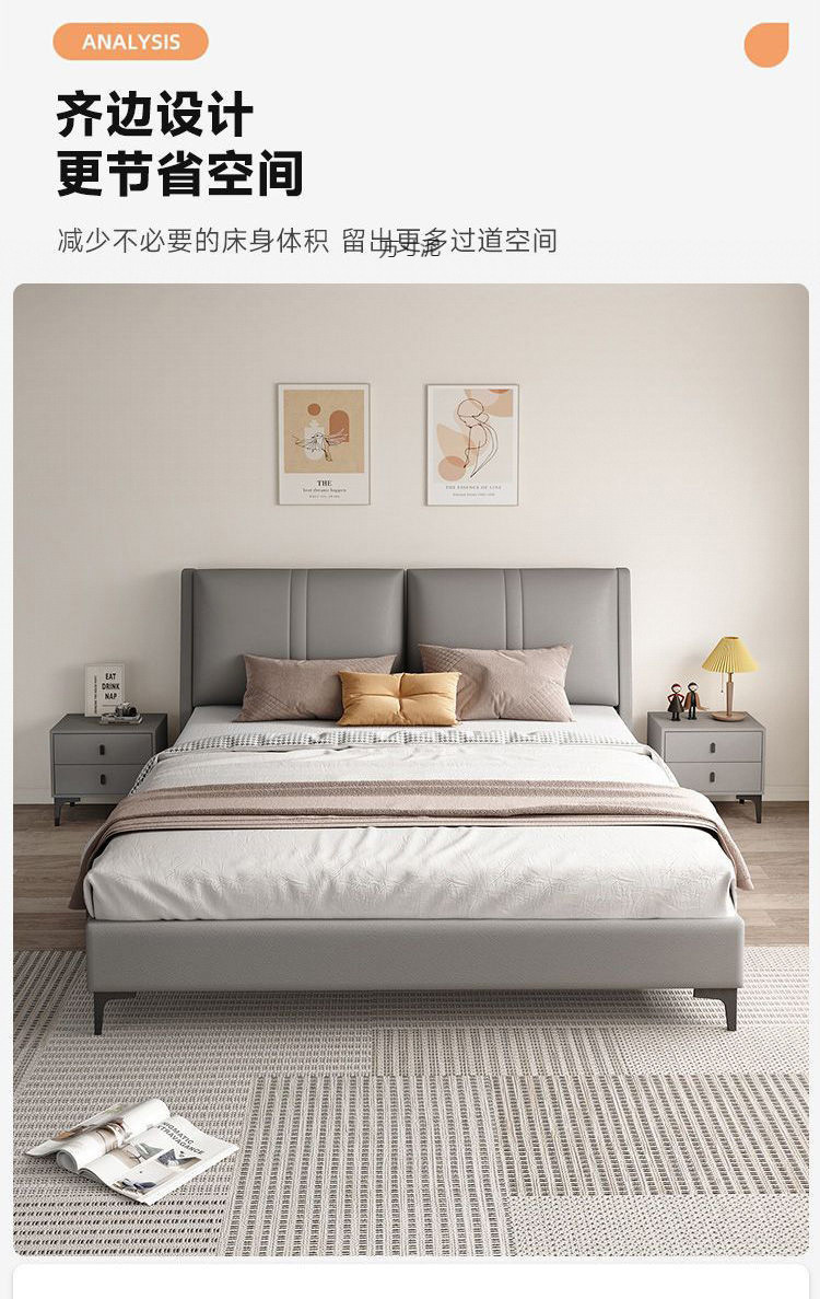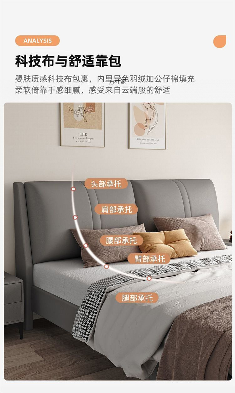 침실 전체 단단한 나무 침대 기술 천 부드러운 이탈리아 마스터 침실 경제적 인 싱글 더블 침대 부드러운 가방 임대 홈 침대스토어 가기