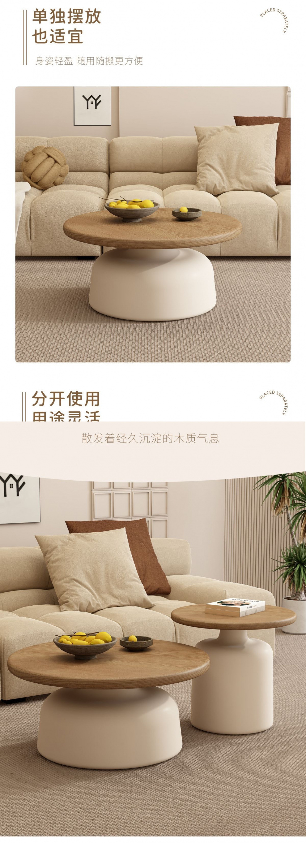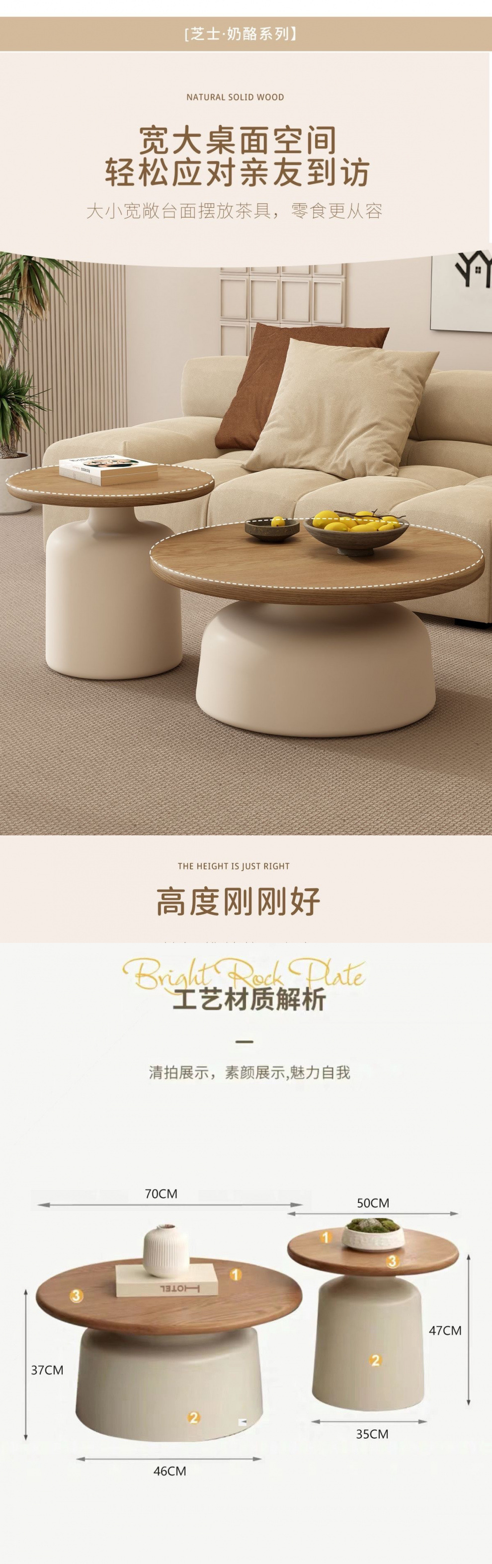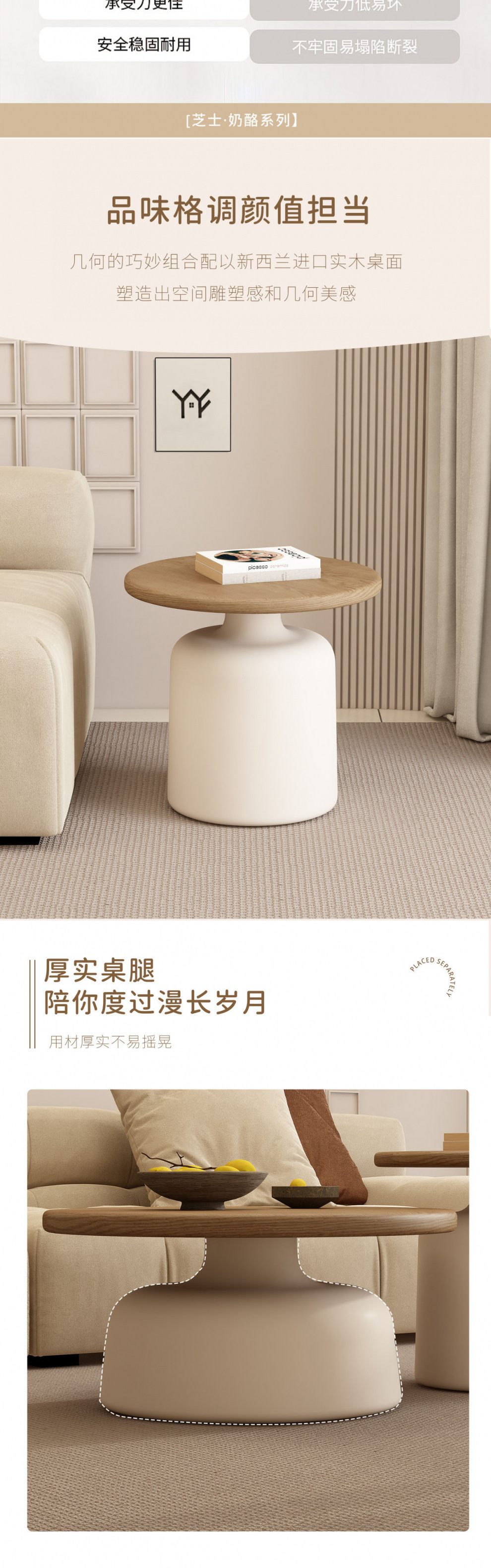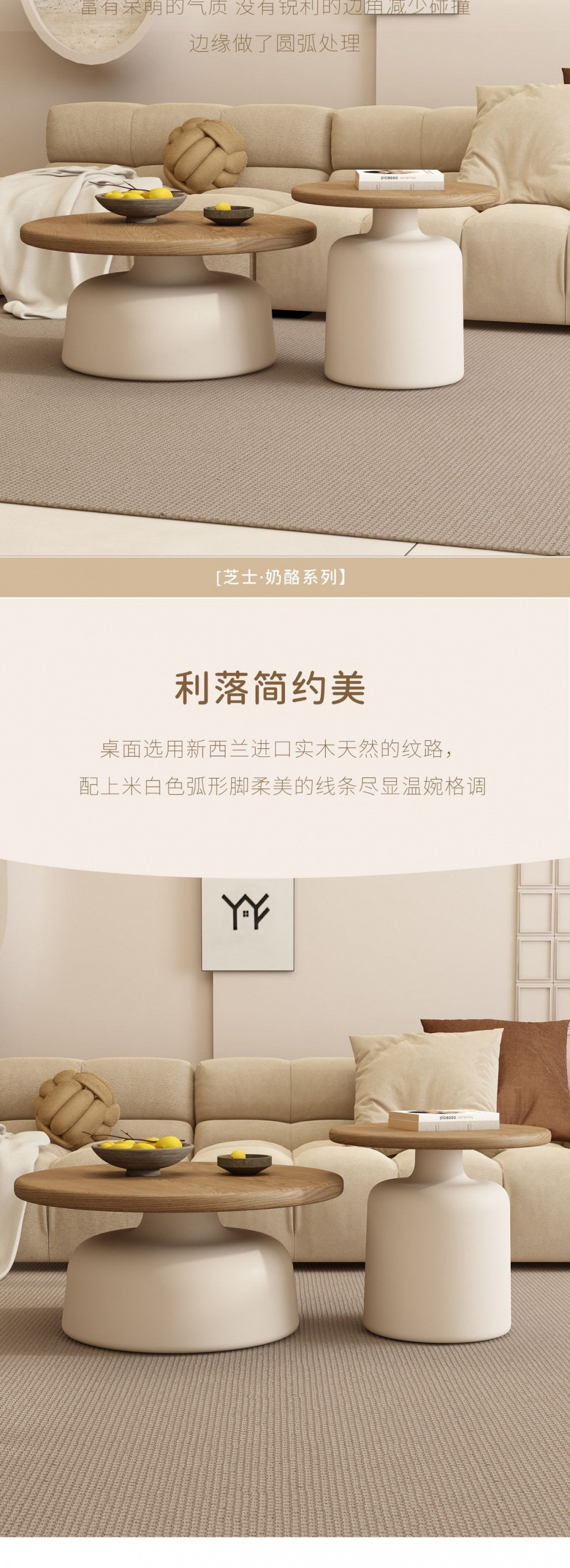 크림 스타일 아파트 커피 테이블 거실 가정용 작은 아파트 간단한 인터넷 기념 철 라운드 홈스테이 커피 테이블스토어 가기