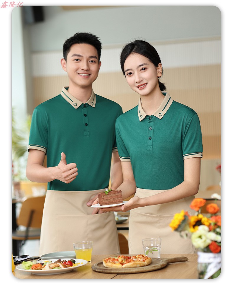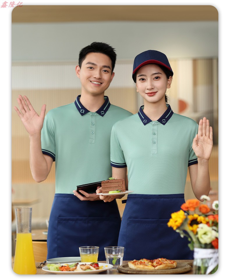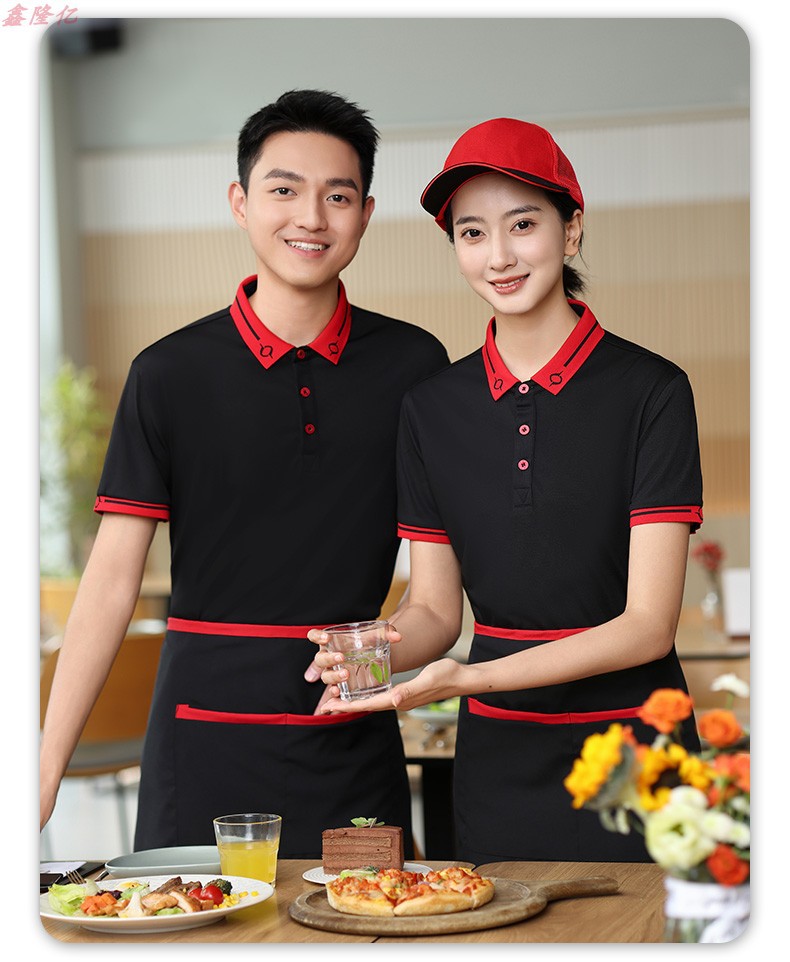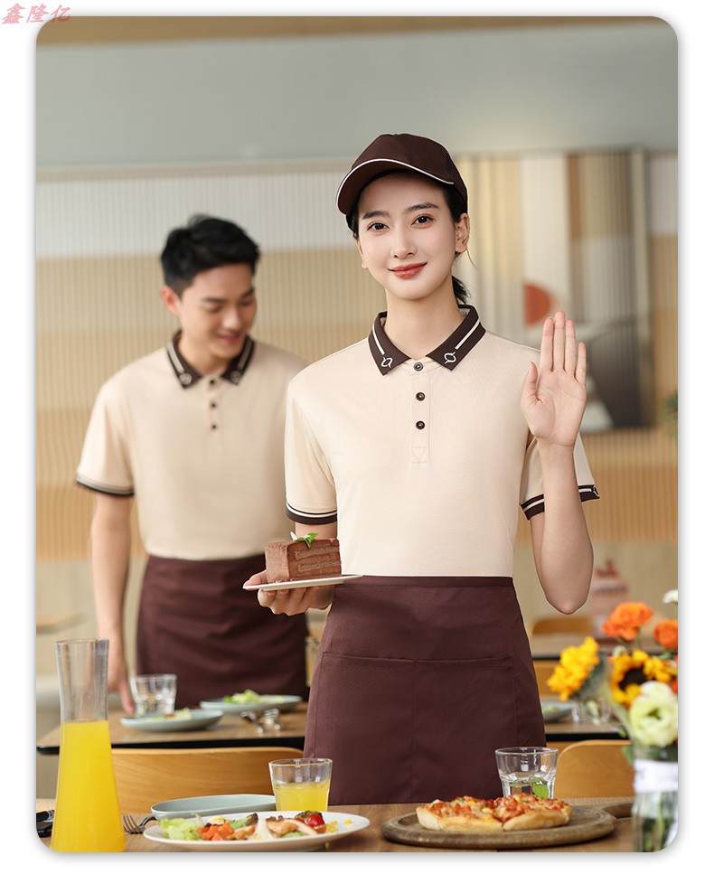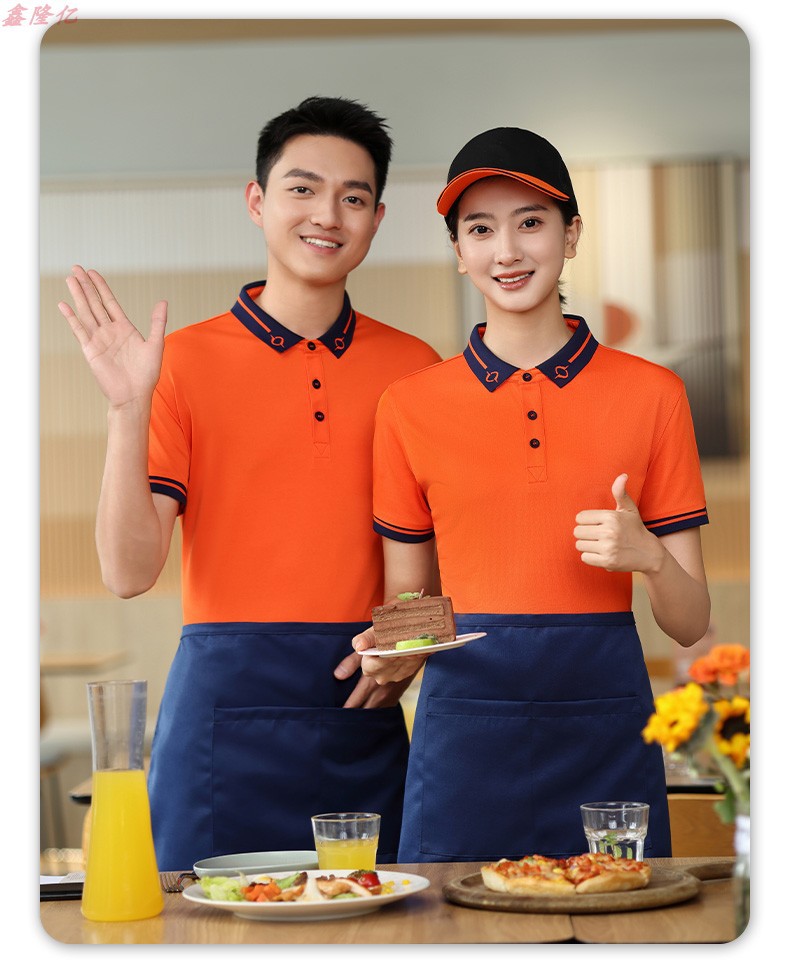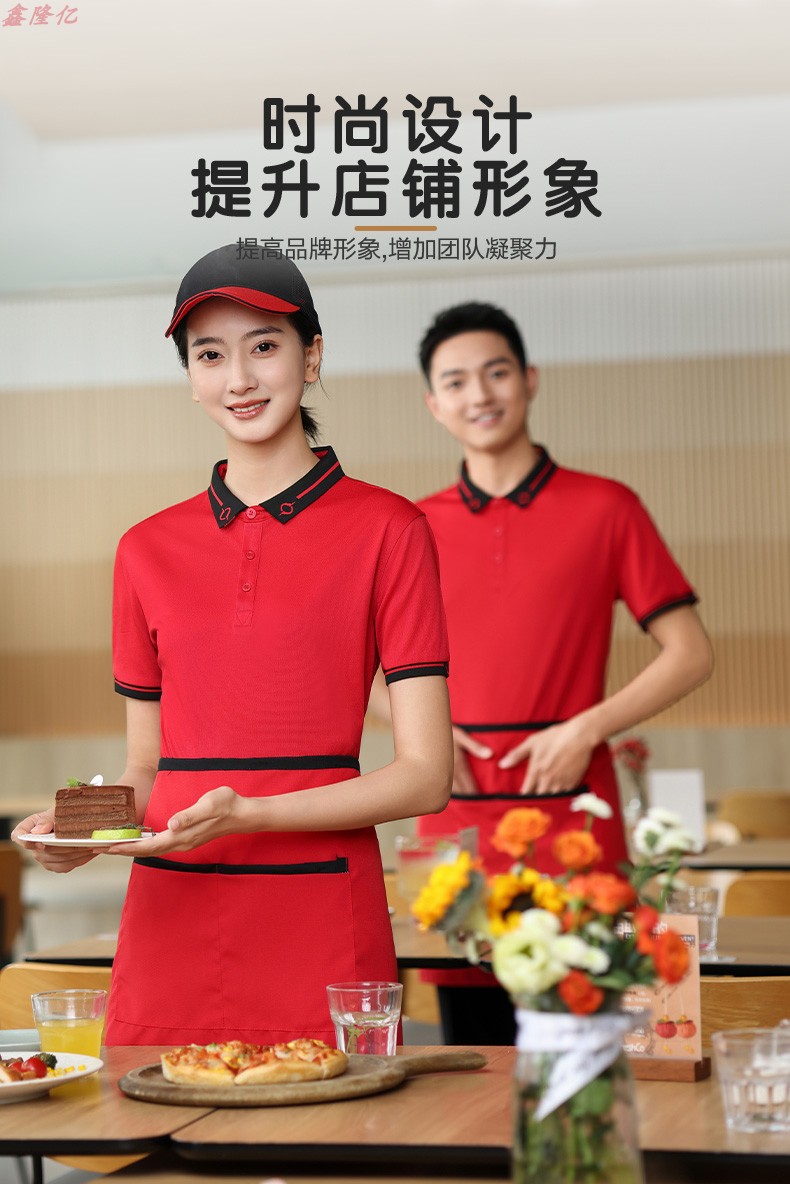 여름 반팔 옷깃 티셔츠 레스토랑 패스트 푸드 레스토랑 밀크 티 샵 카페 스테이크 샵 웨이터 작업복스토어 가기