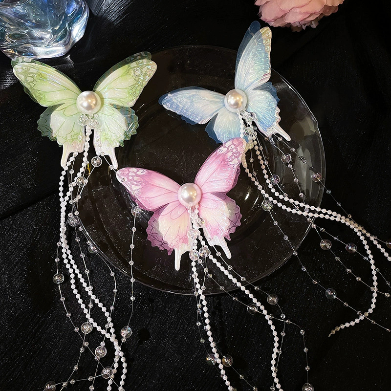 메쉬 나비 진주 쌀 구슬 술 헤어 핀 대기 사이드 덕빌 클립 절묘한 3 차원 패션 달콤한 헤어 액세서리