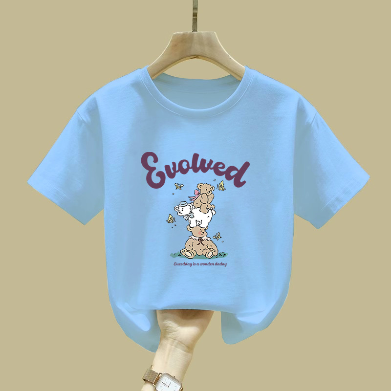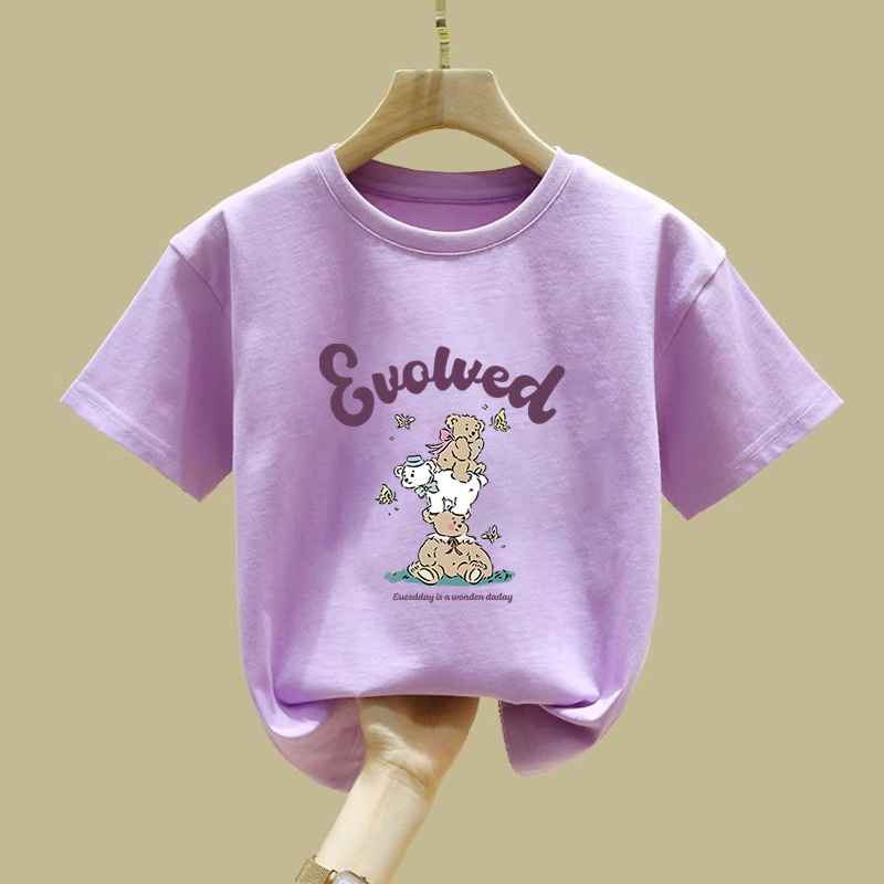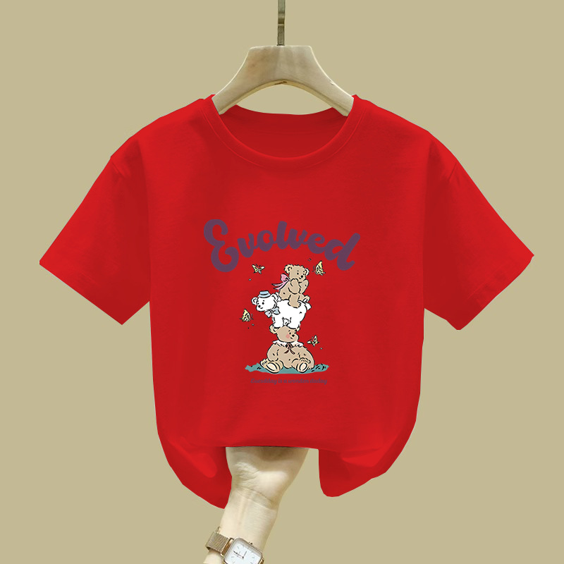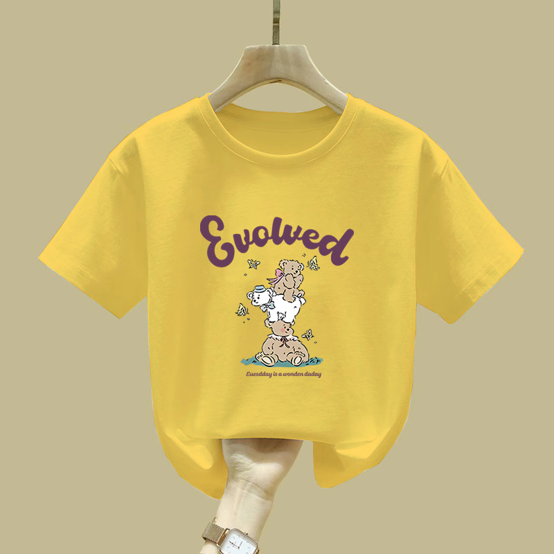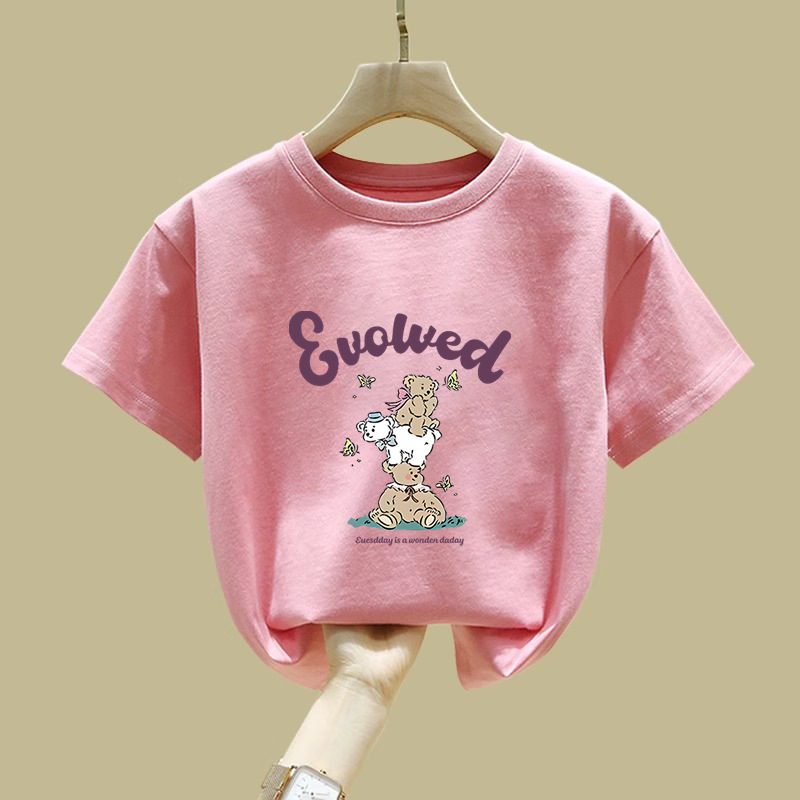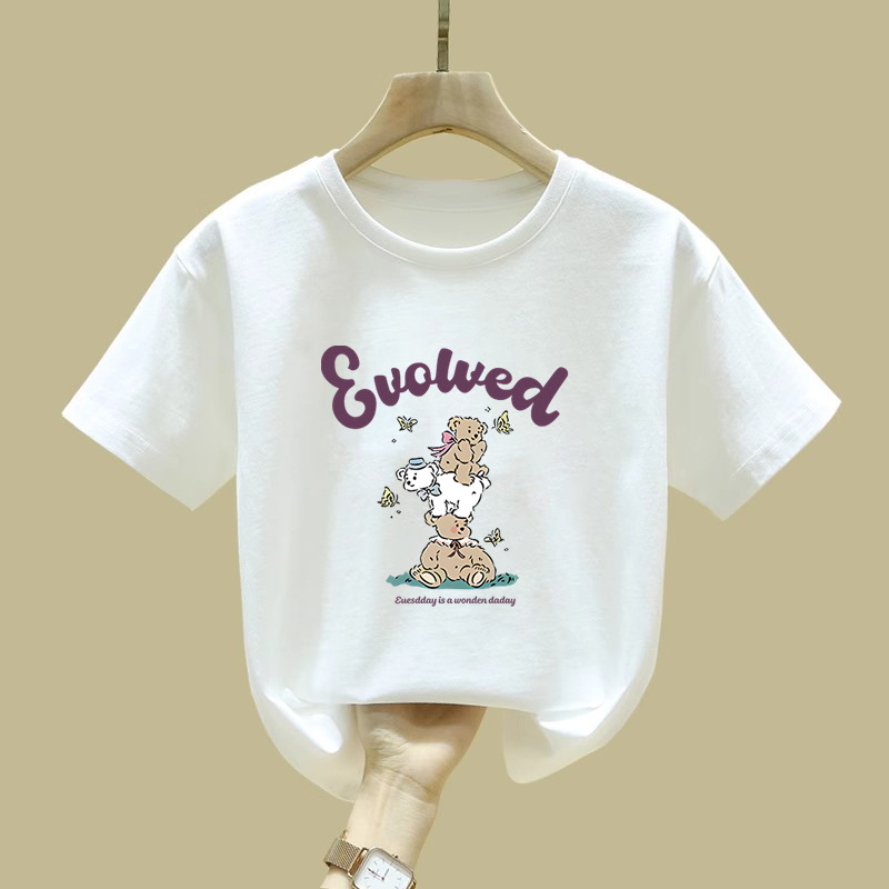 2480 # 면 어린이 반팔 티셔츠 여름 새로운 아동복 아동복 느슨한 탑 여자 옷 여름 의류