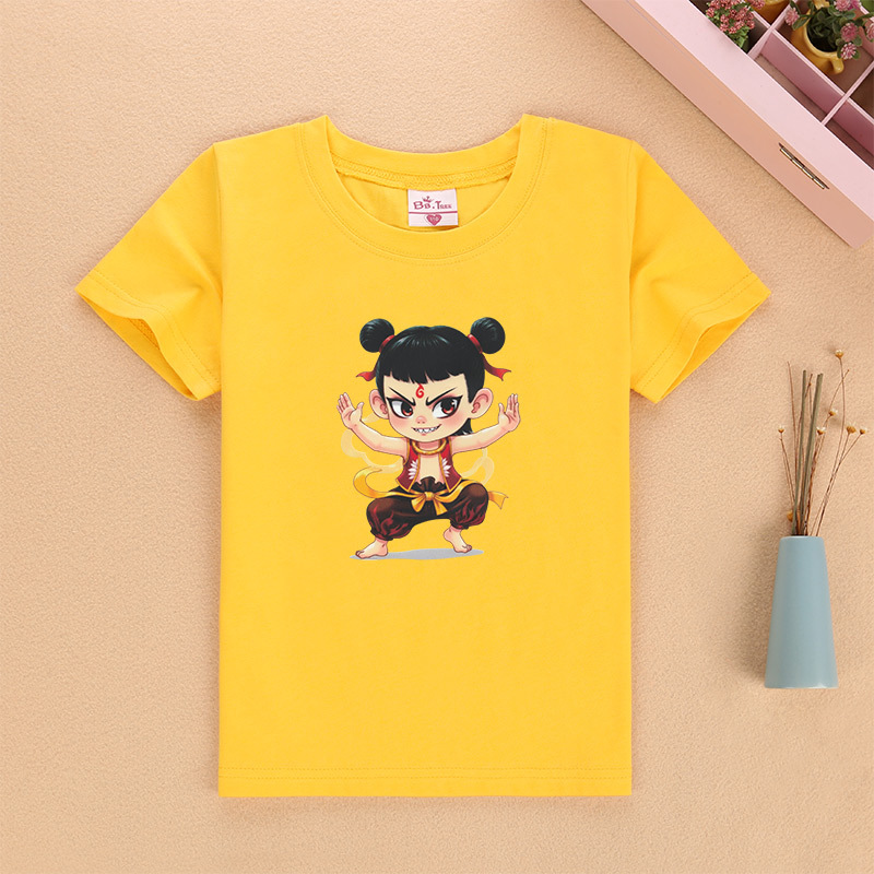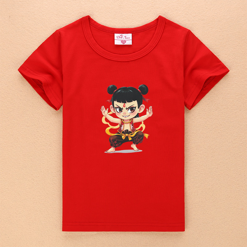 만화 아동복 한 세대의 소년 여름 반팔 티셔츠 면 어린이 재킷 소년 흰색 티셔츠 조수 옷