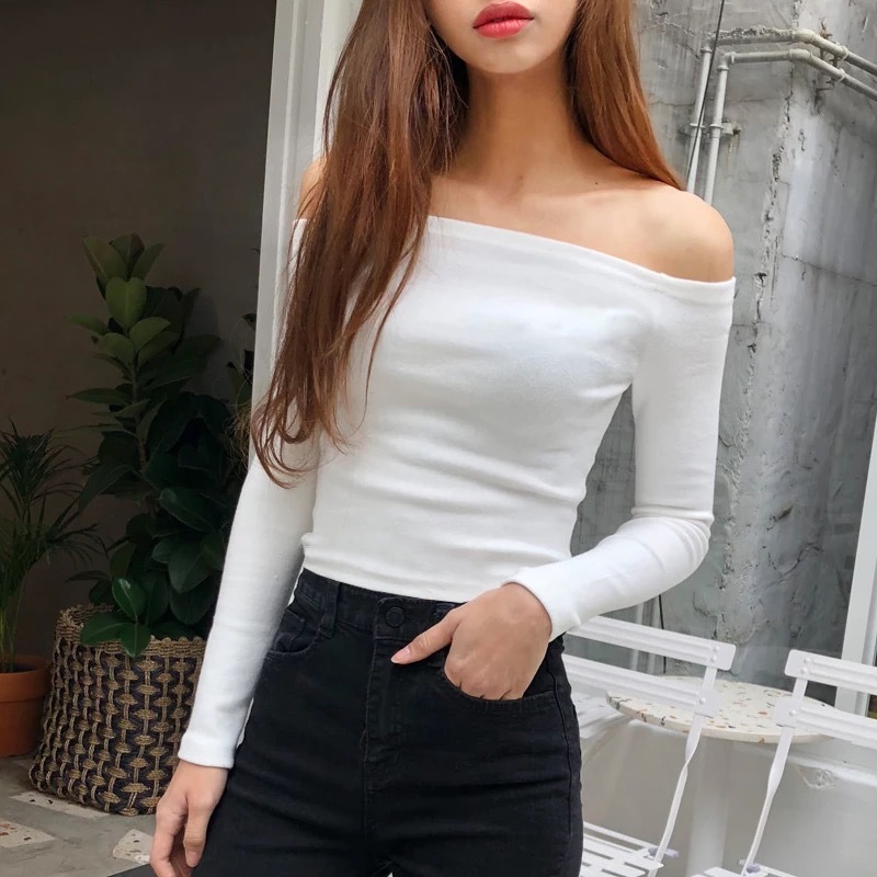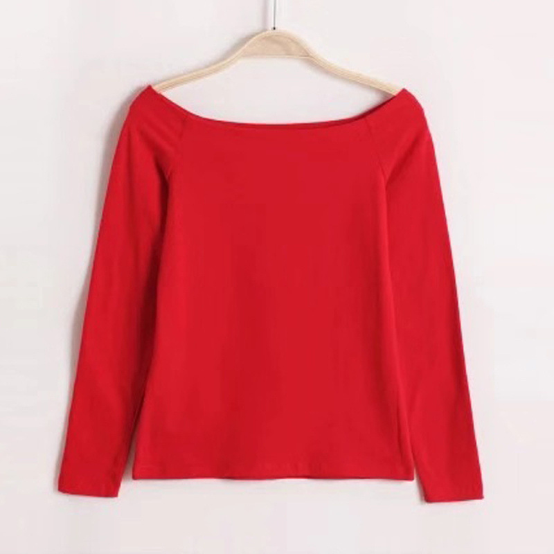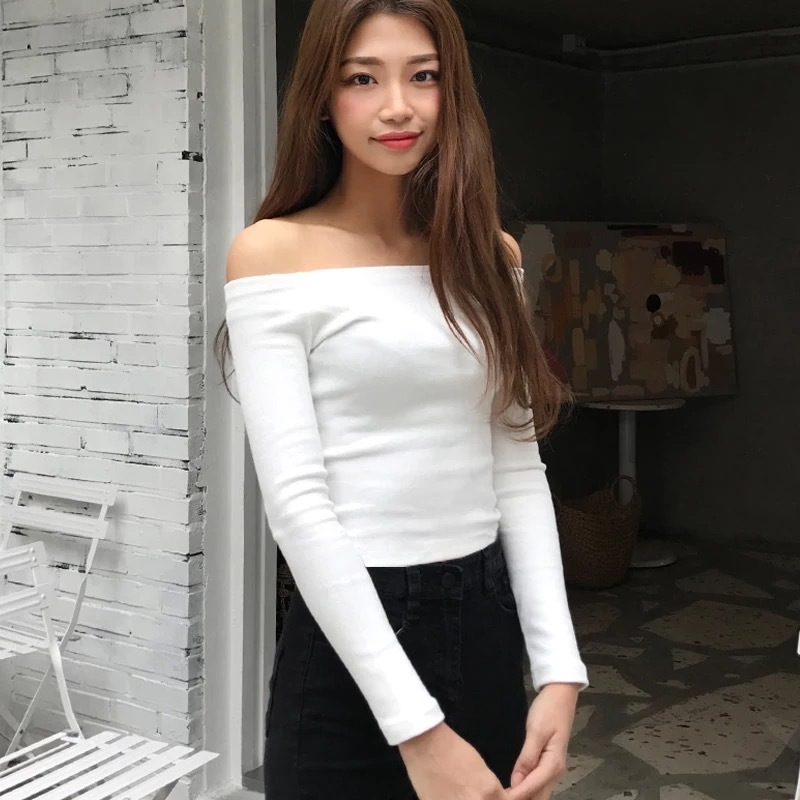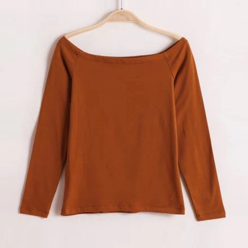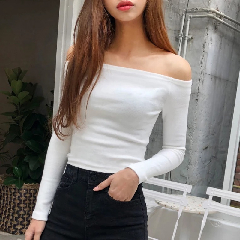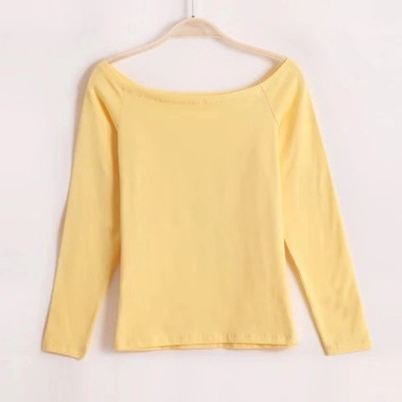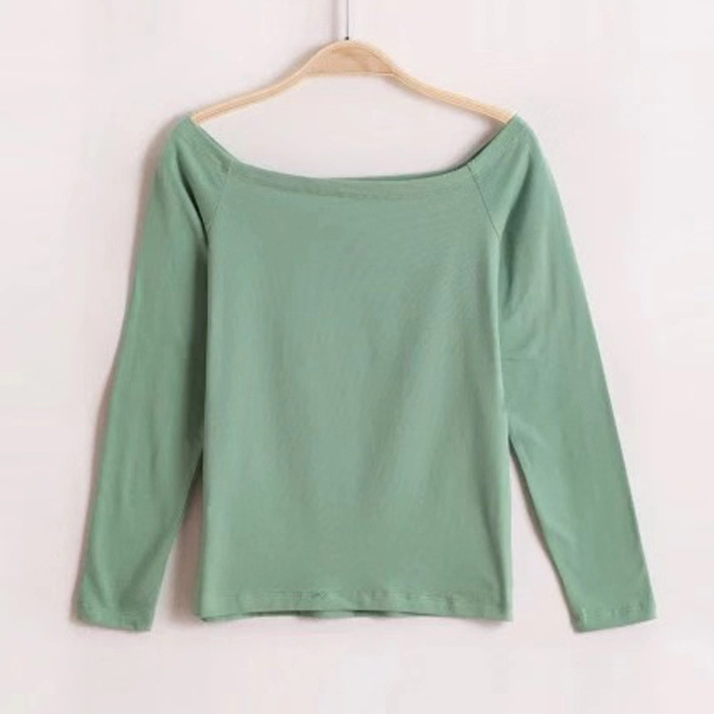 오프 숄더 칼라 티셔츠가있는 화이트 아보카도 그린 오프 숄더 긴베이스 셔츠 여성용 가을 코튼 슬림 핏 타이트 올 매치 탑스토어 가기