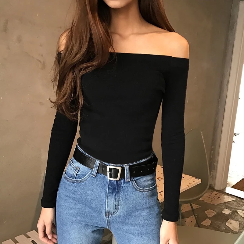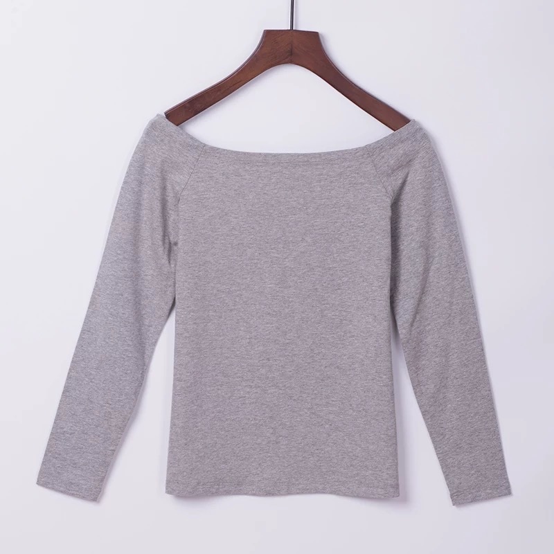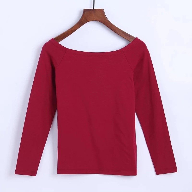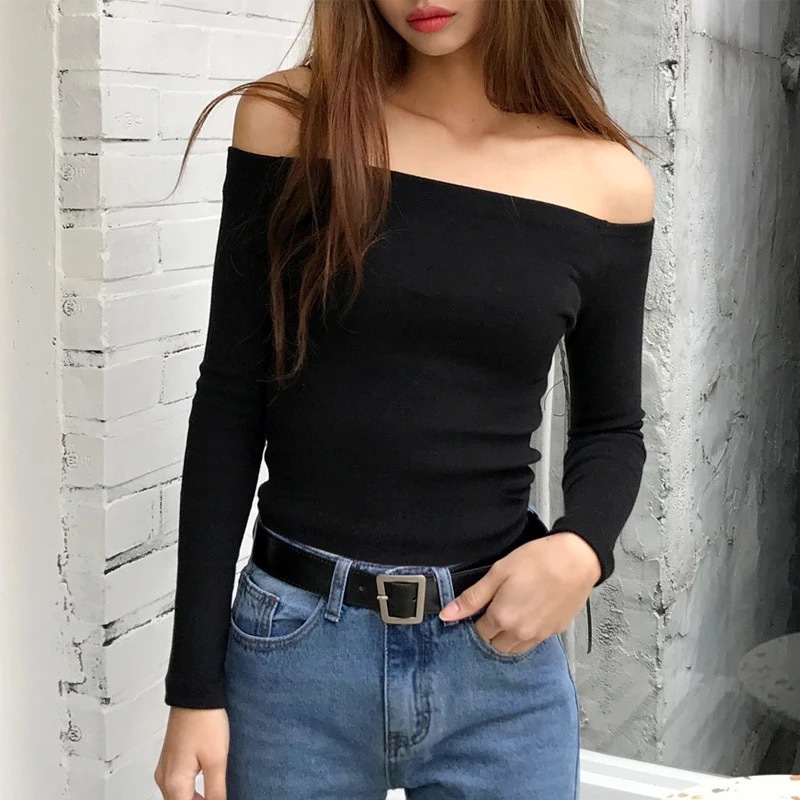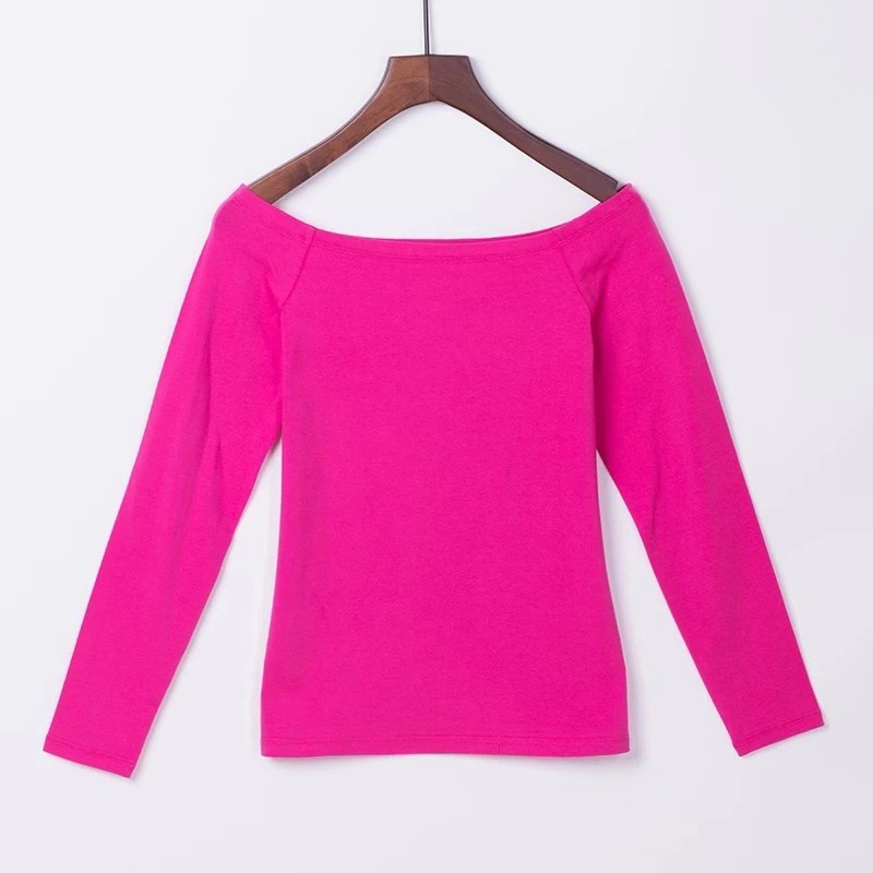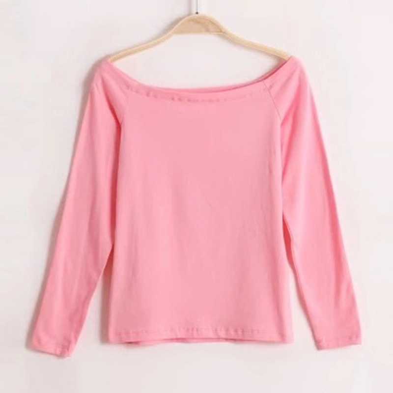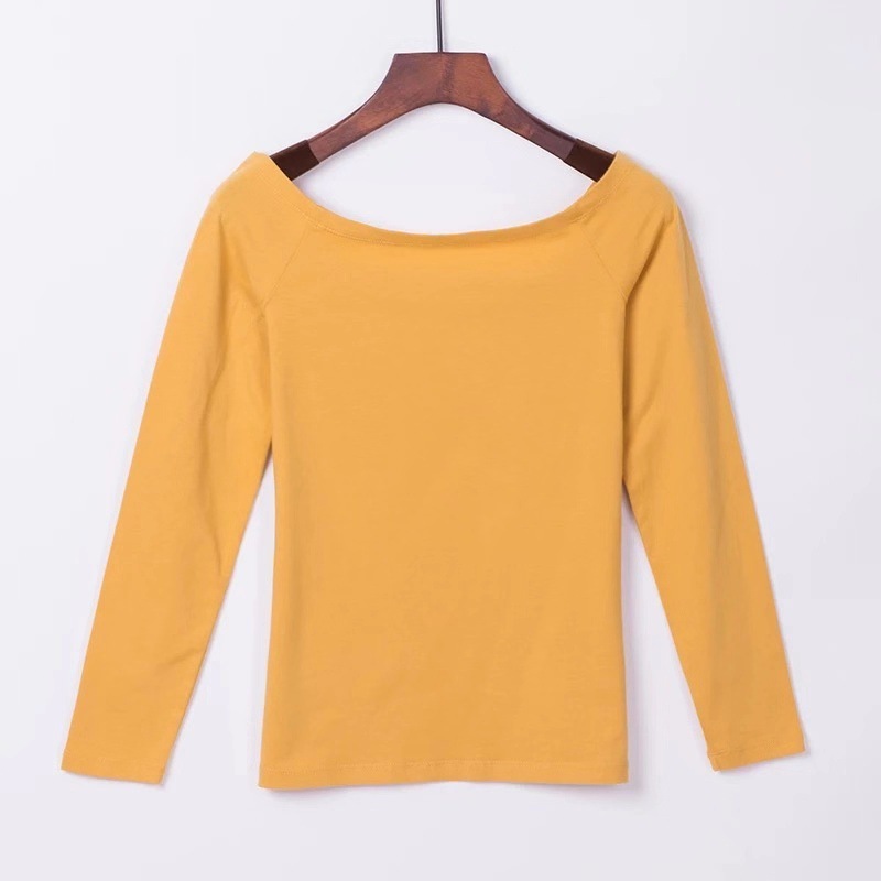 오프 숄더 칼라 티셔츠가있는 화이트 아보카도 그린 오프 숄더 긴베이스 셔츠 여성용 가을 코튼 슬림 핏 타이트 올 매치 탑스토어 가기