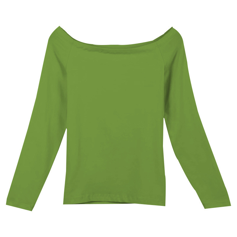 오프 숄더 칼라 티셔츠가있는 화이트 아보카도 그린 오프 숄더 긴베이스 셔츠 여성용 가을 코튼 슬림 핏 타이트 올 매치 탑