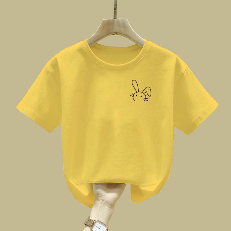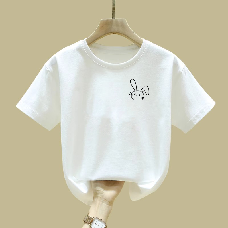 2458 # 여자 반소매 티셔츠 여름 신식 중대형 어린이 면 반소매 어린이 티셔츠 걸스 탑