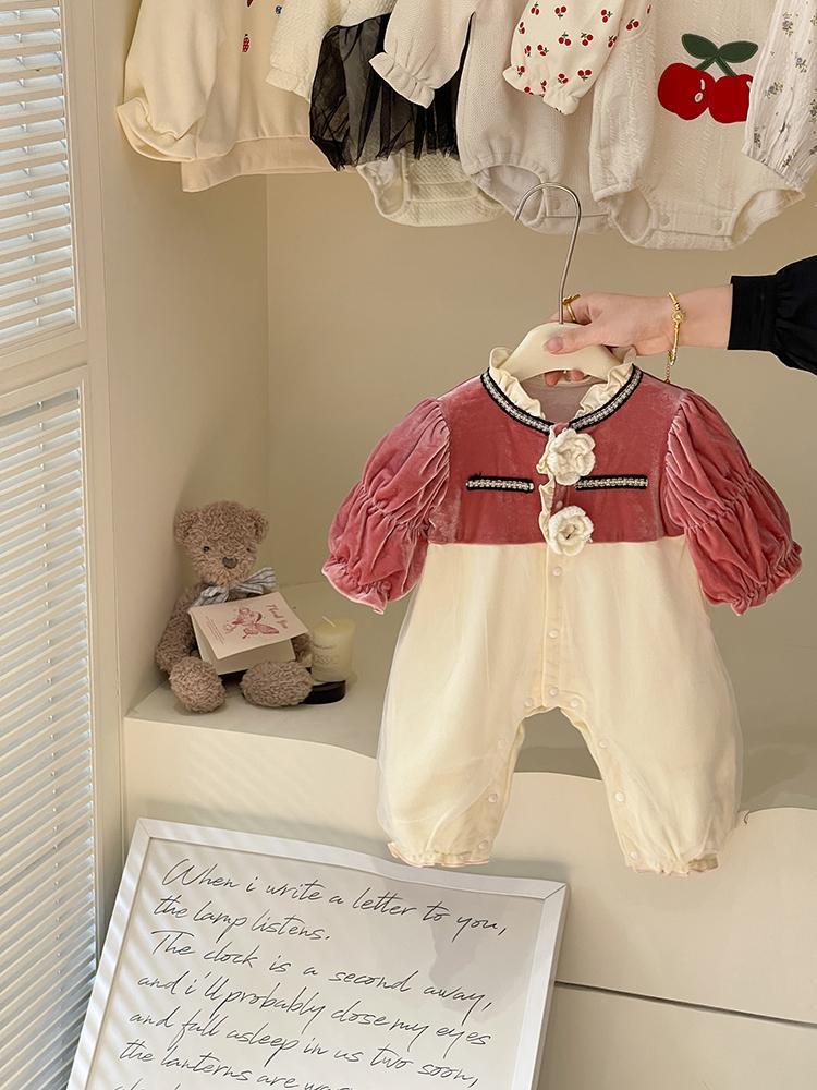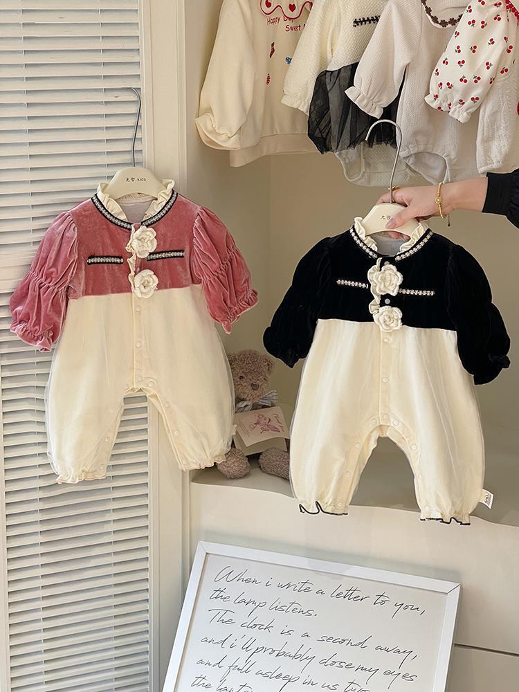아기 옷 봄과 가을 2025 새로운 신생아 사이버 축하 슈퍼 귀여운 작은 달 나이 등반 착용 여성 보물 가을 점프 수트스토어 가기