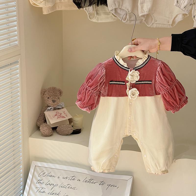 아기 옷 봄과 가을 2025 새로운 신생아 사이버 축하 슈퍼 귀여운 작은 달 나이 등반 착용 여성 보물 가을 점프 수트